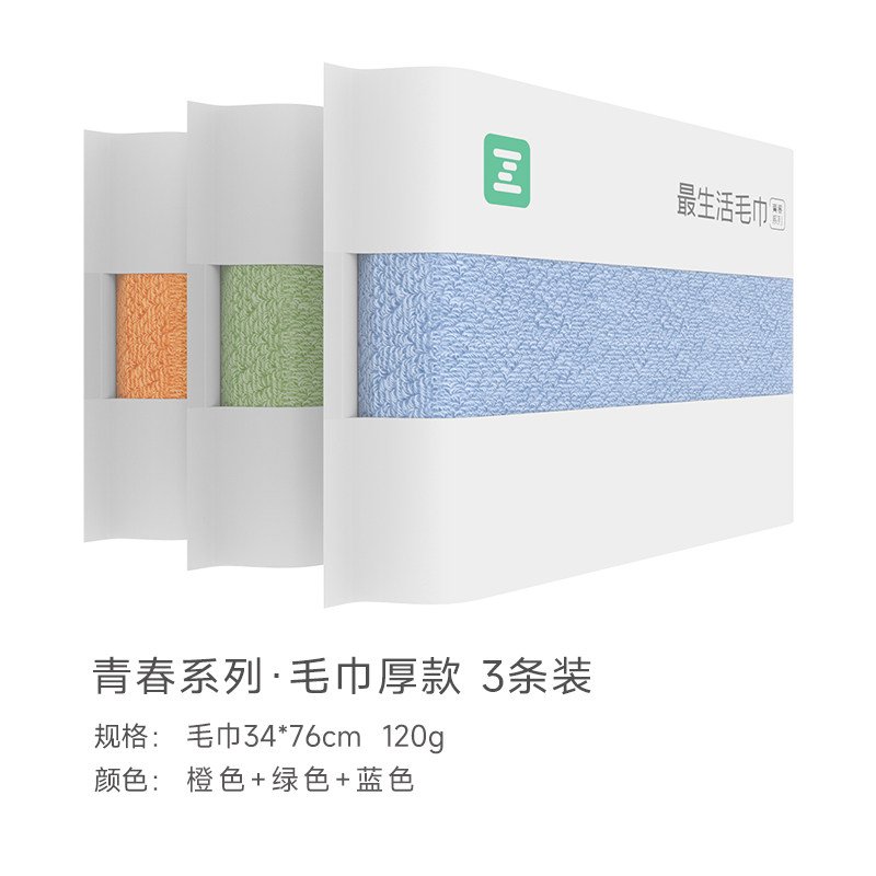 【店长推荐】加厚款 毛巾3条装【蓝绿橘】