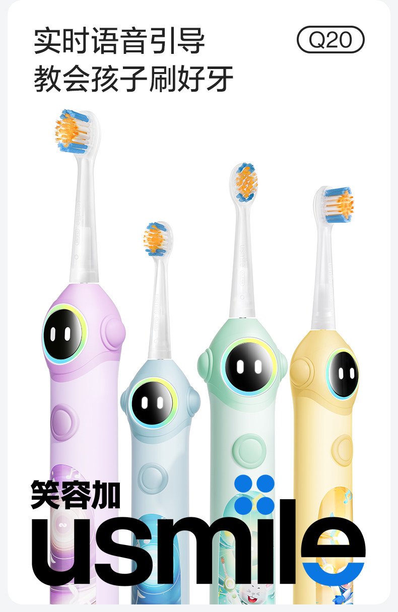 笑容加usmile儿童专用电动牙刷3至15岁宝宝礼物智能语音提醒刷Q20