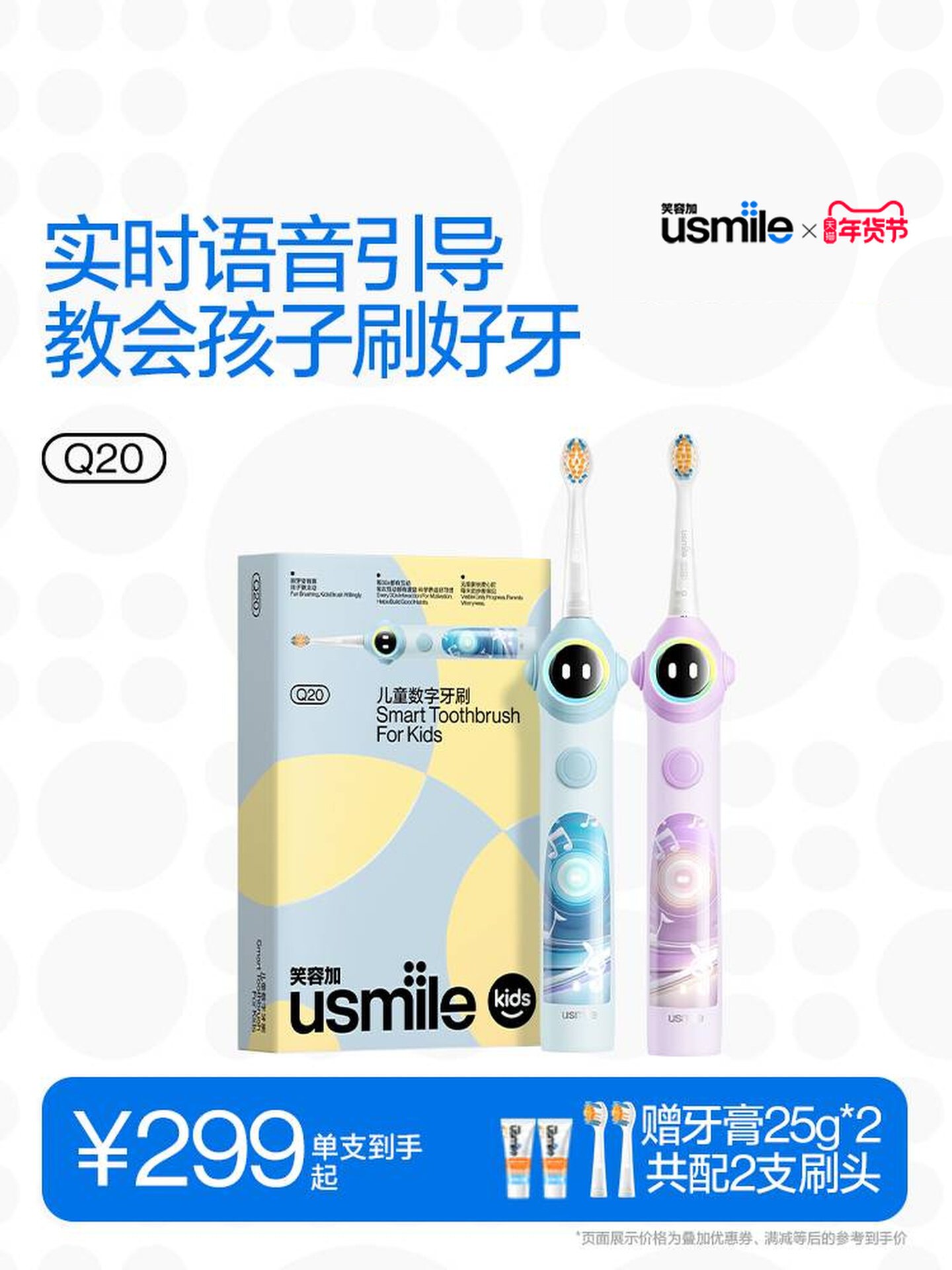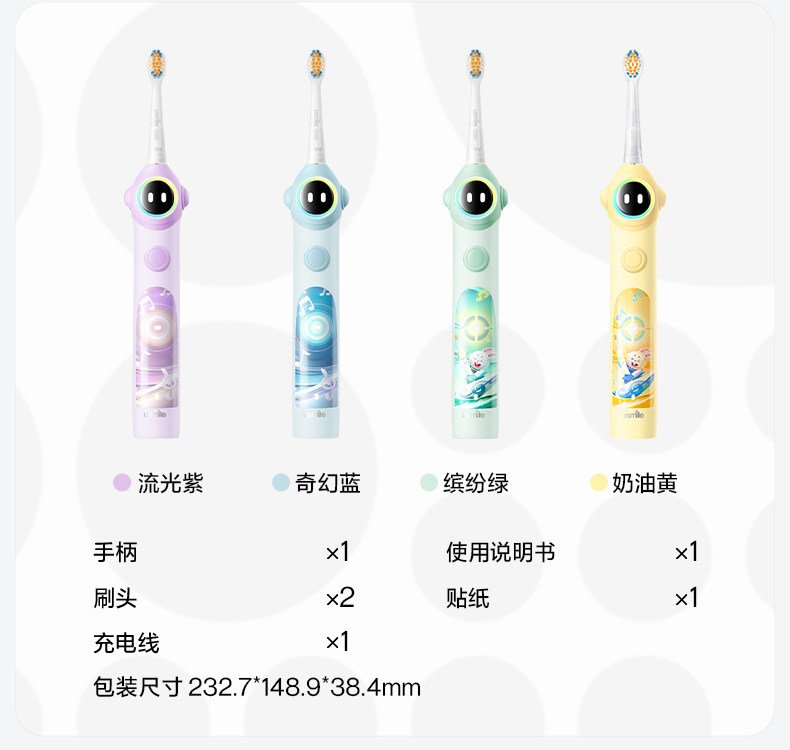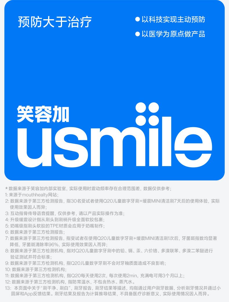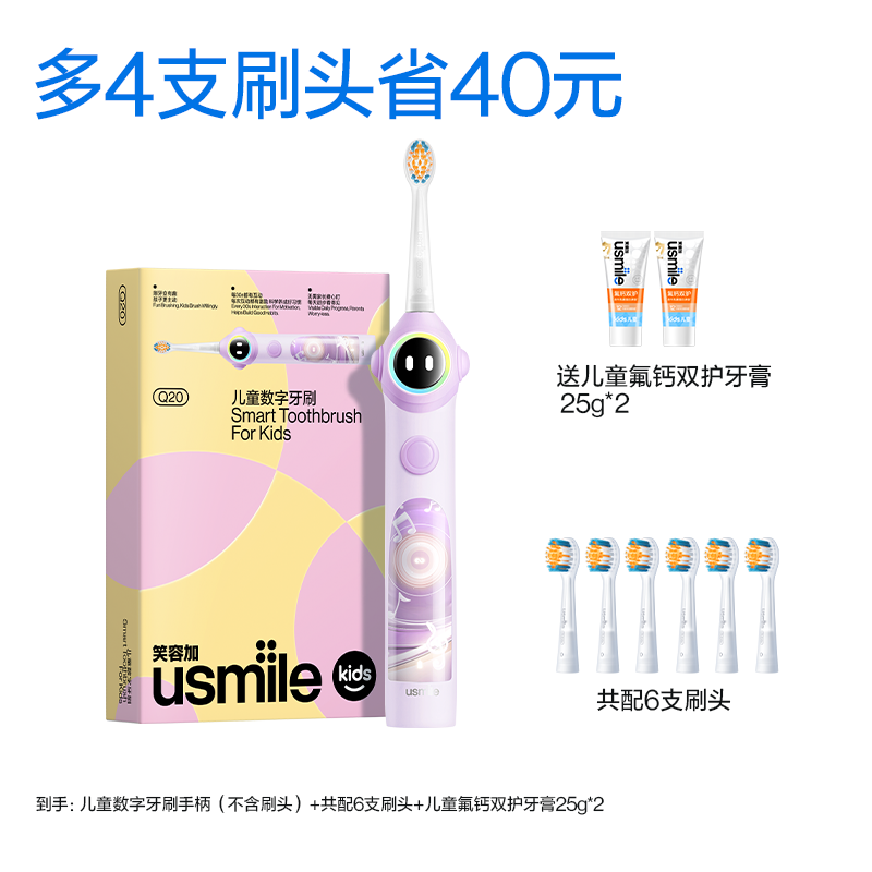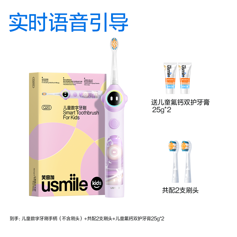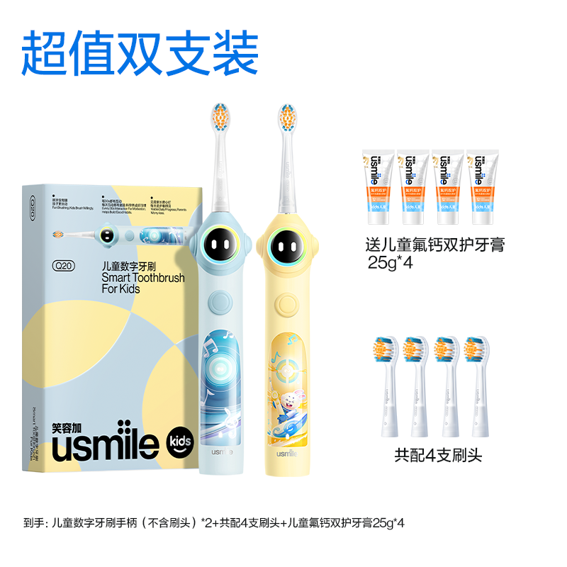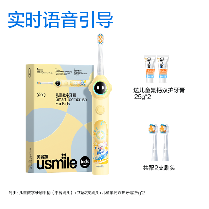 笑容加usmile儿童专用电动牙刷3至15岁宝宝礼物智能语音提醒刷Q20 数量