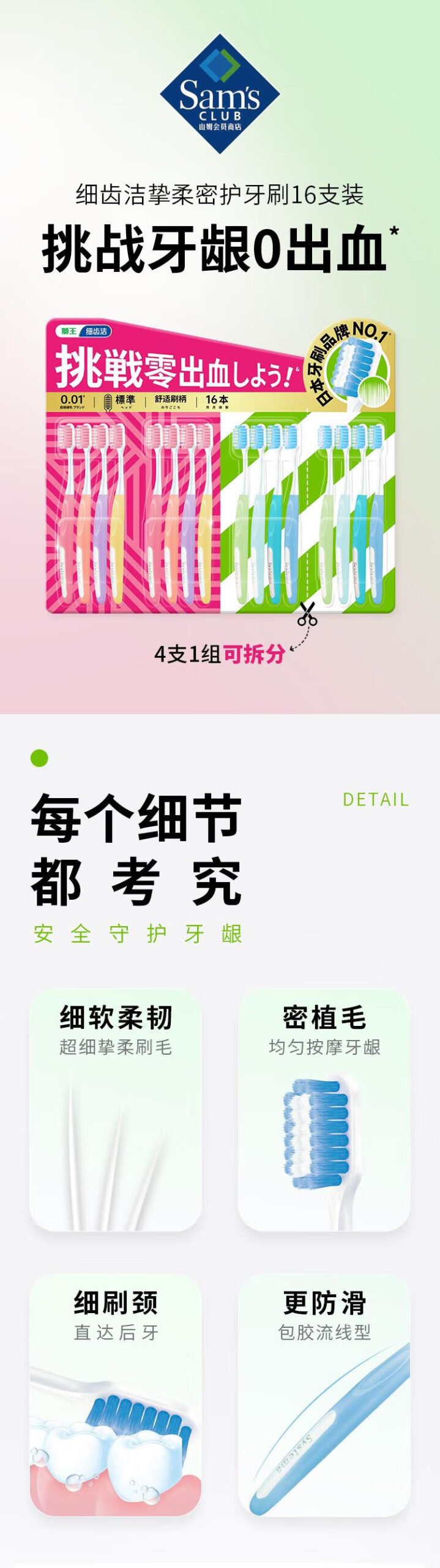 细齿洁挚柔密护牙刷 16支 软毛 16支 数量