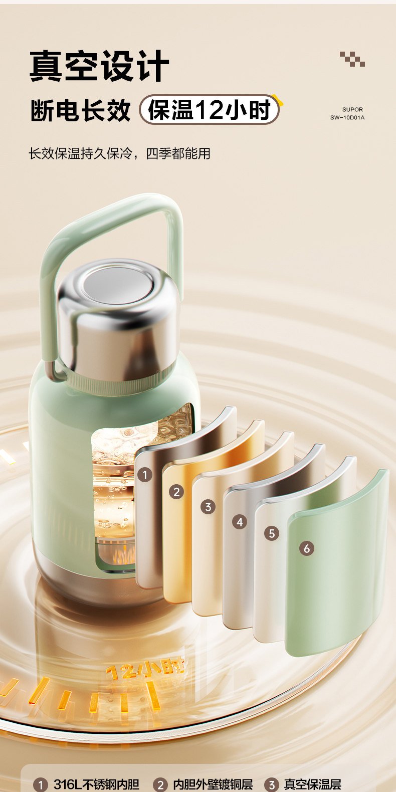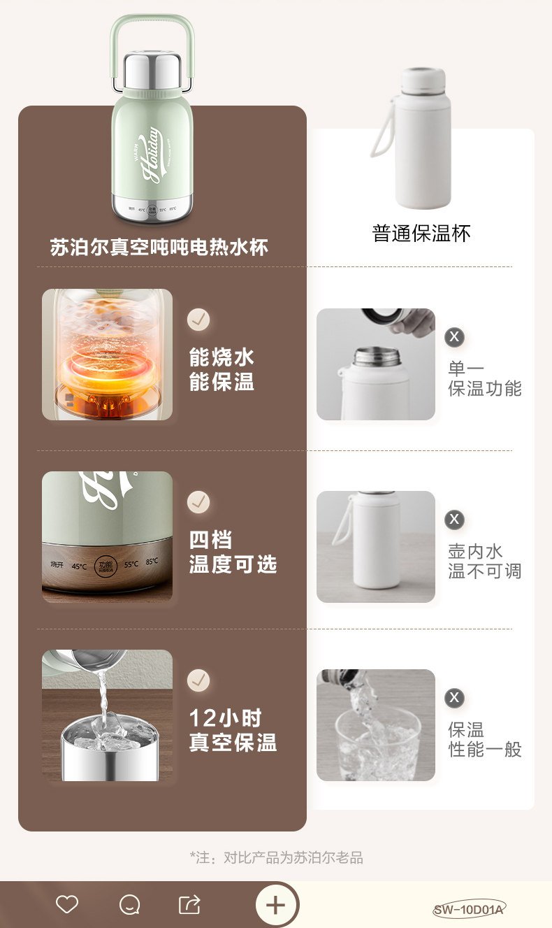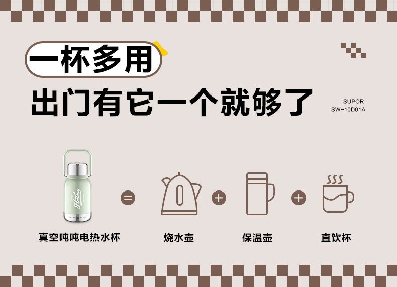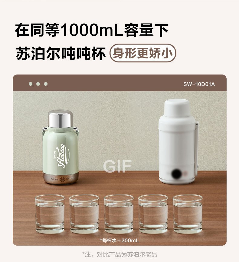 苏泊尔烧水便携式烧水壶小型恒温壶电热水杯加热保温杯旅行热水壶 数量