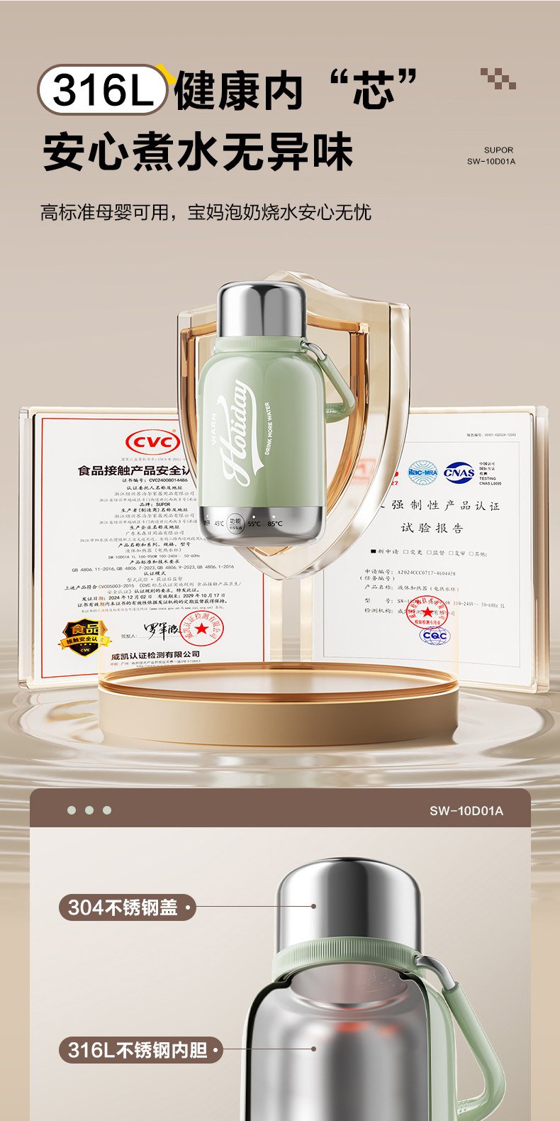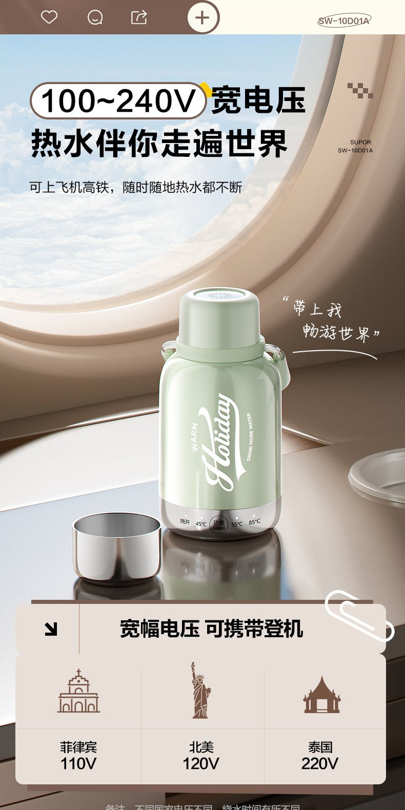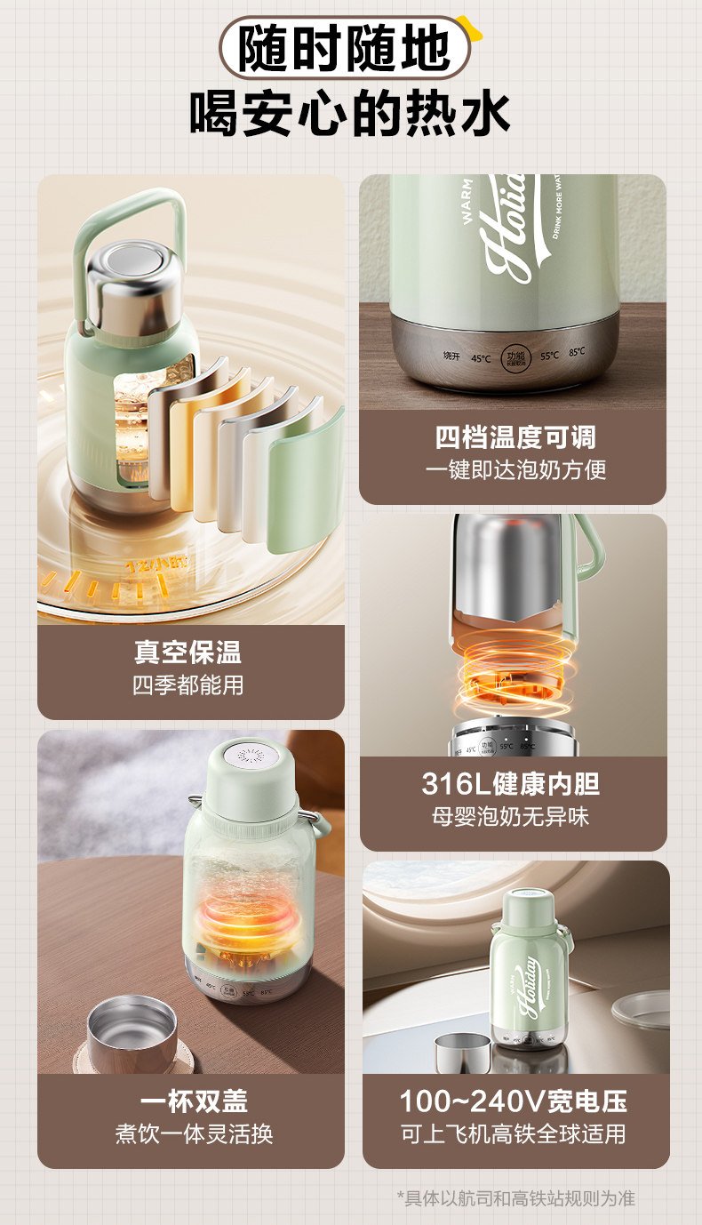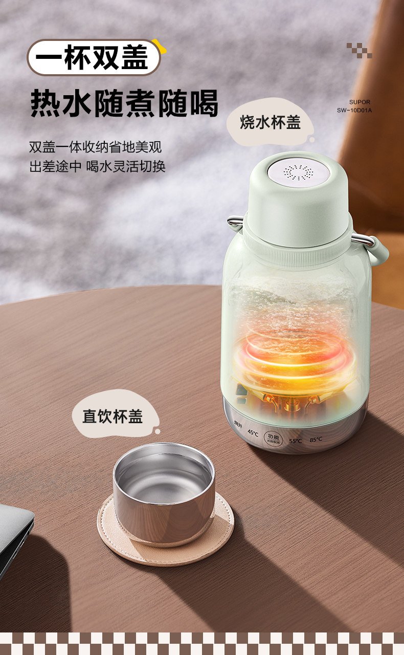 苏泊尔烧水便携式烧水壶小型恒温壶电热水杯加热保温杯旅行热水壶