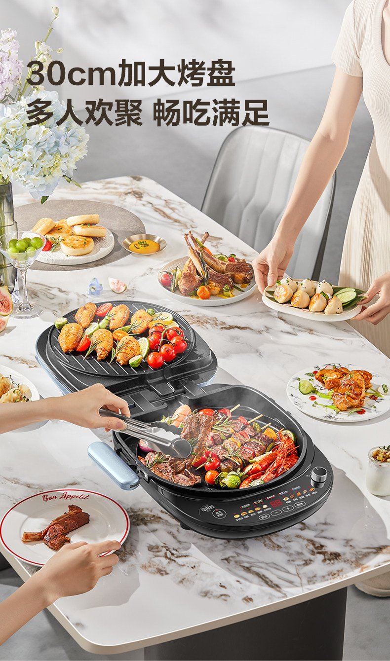 小熊烤涮一体锅烤盘家用烤肉电烤炉家用烧烤多功能无烟烹饪机