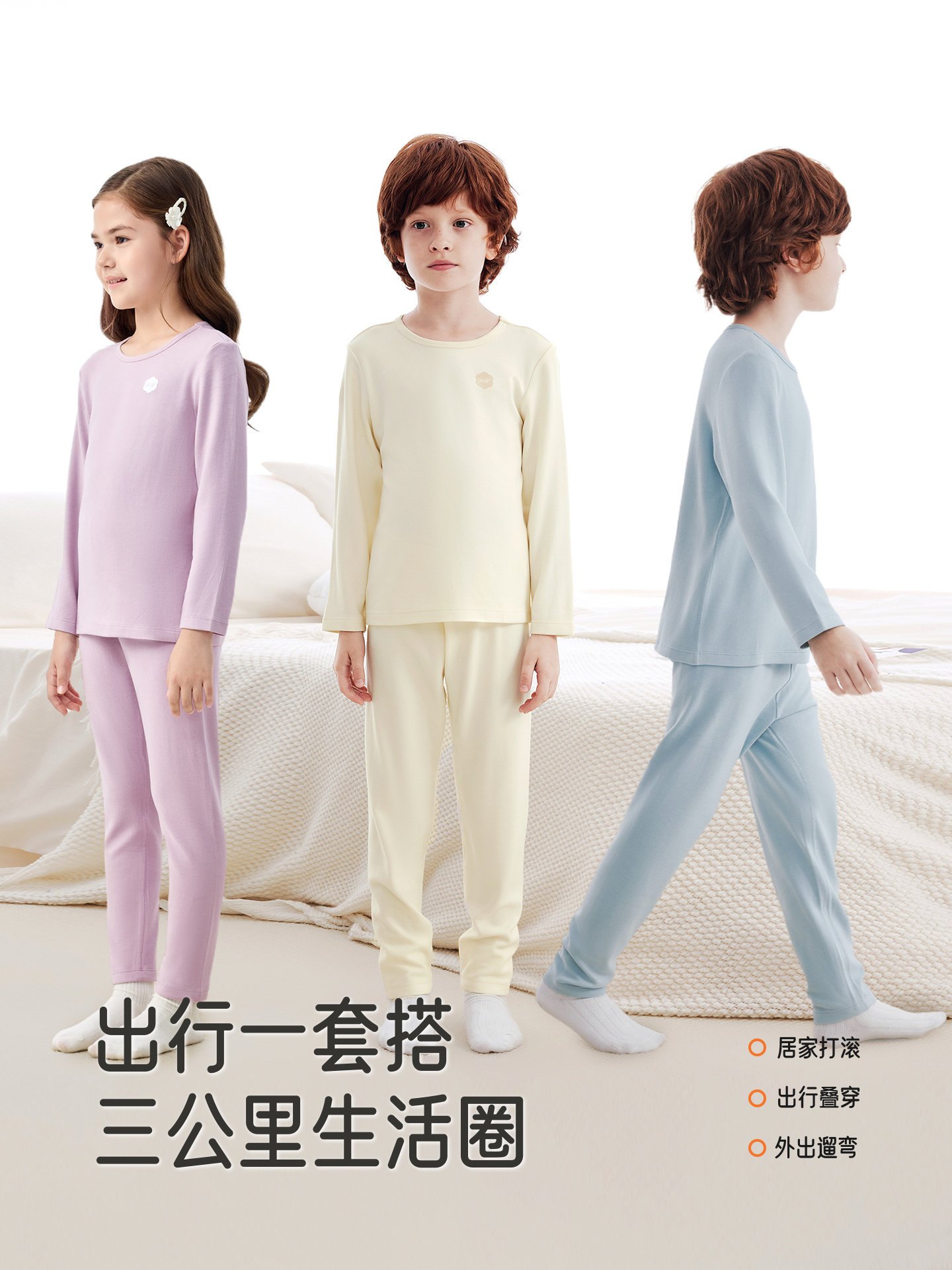 英氏儿童秋衣秋裤校服内搭冬男童打底睡衣秋冬款女童保暖内衣套装