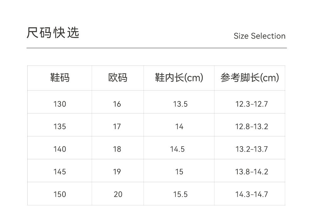 19码 内长13.0cm,建议脚长12.1-12.5cm