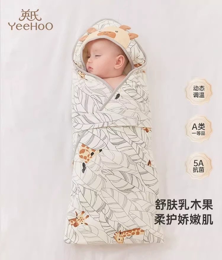 英氏包被婴儿秋冬款5A抗菌新生儿宝宝冬季抱被加厚恒温防惊跳包单