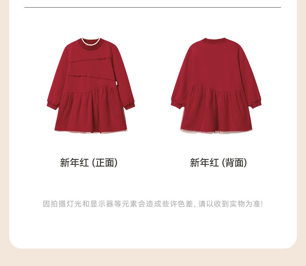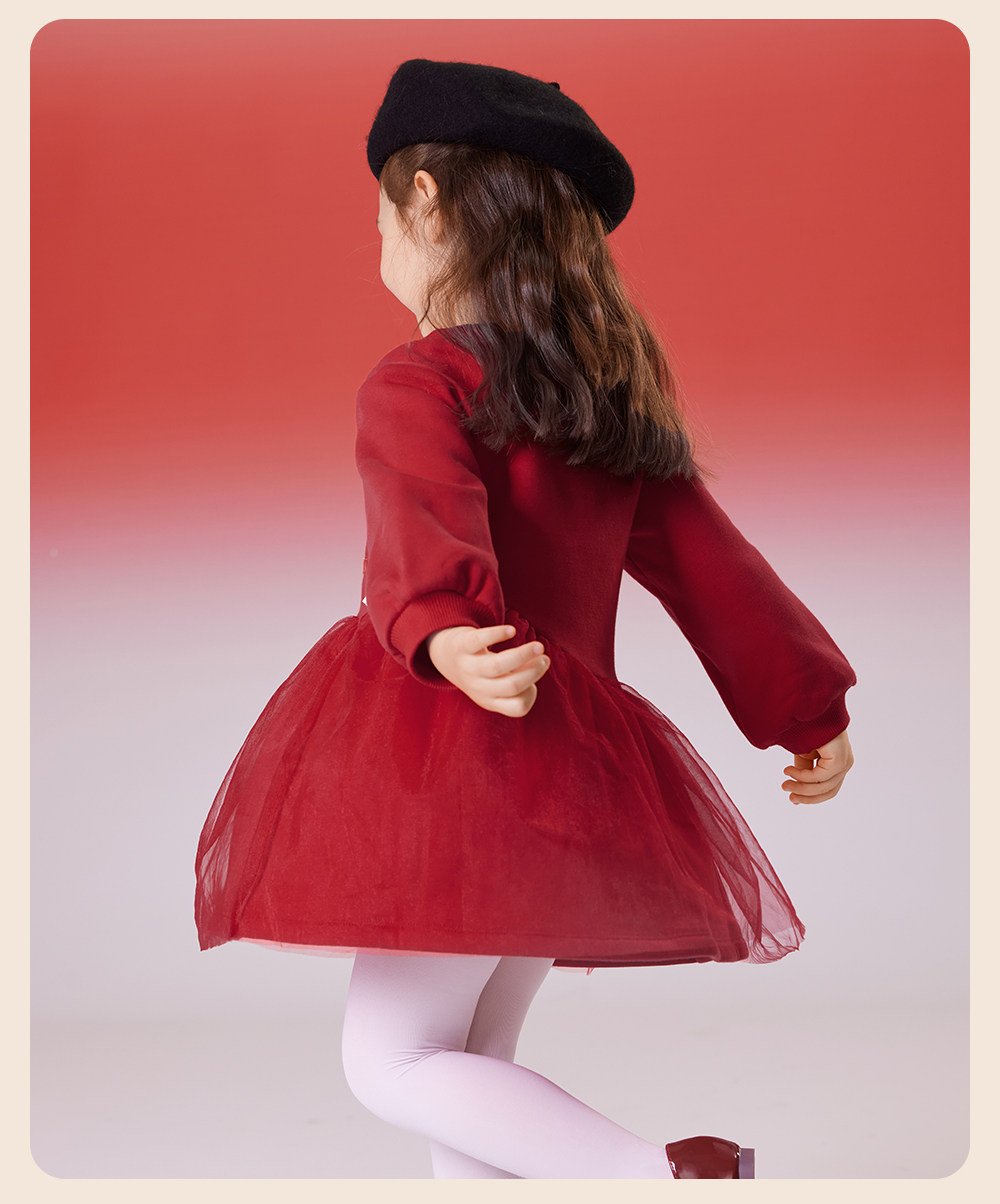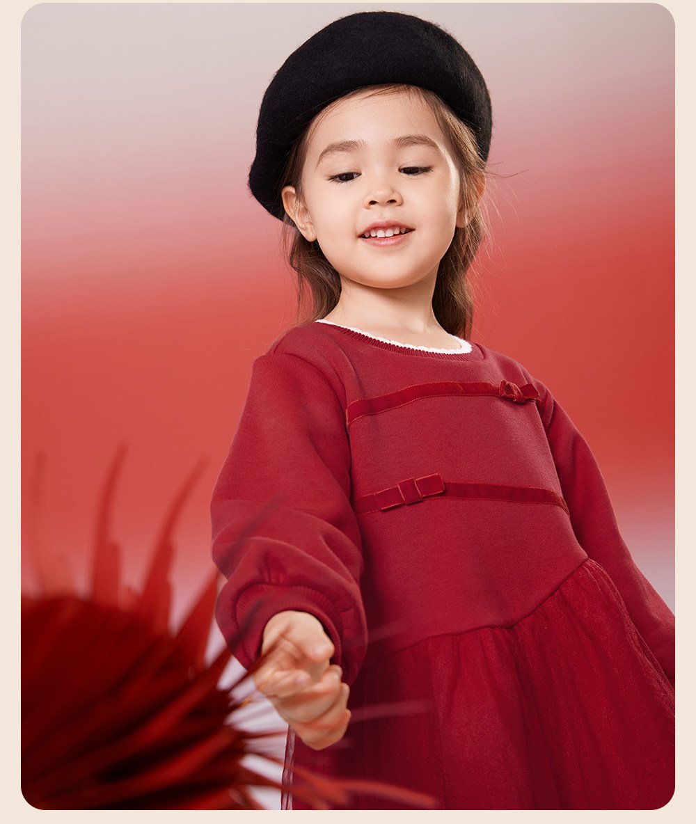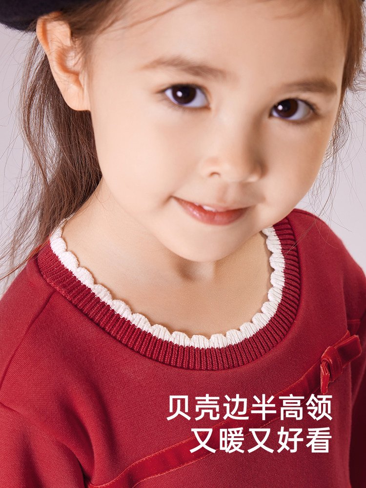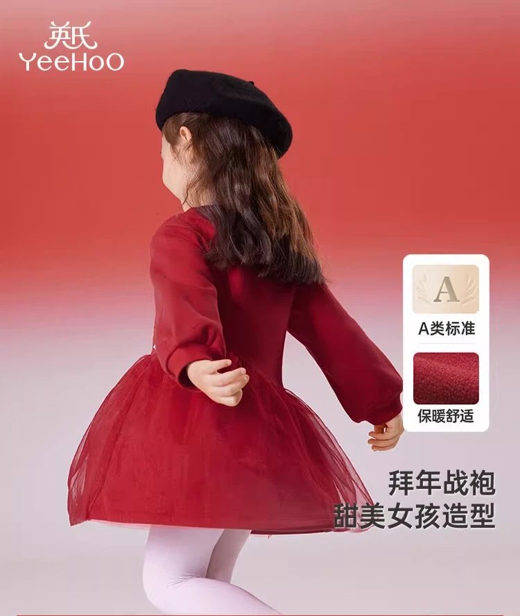 英氏女童连衣裙春季加绒秋冬儿童过年喜庆拜年服红色新年周岁裙子