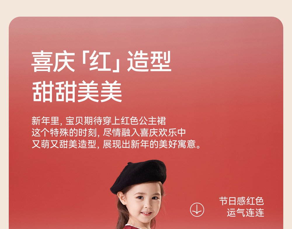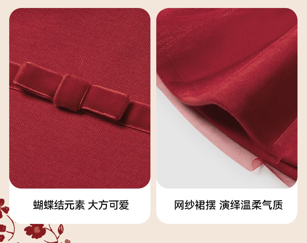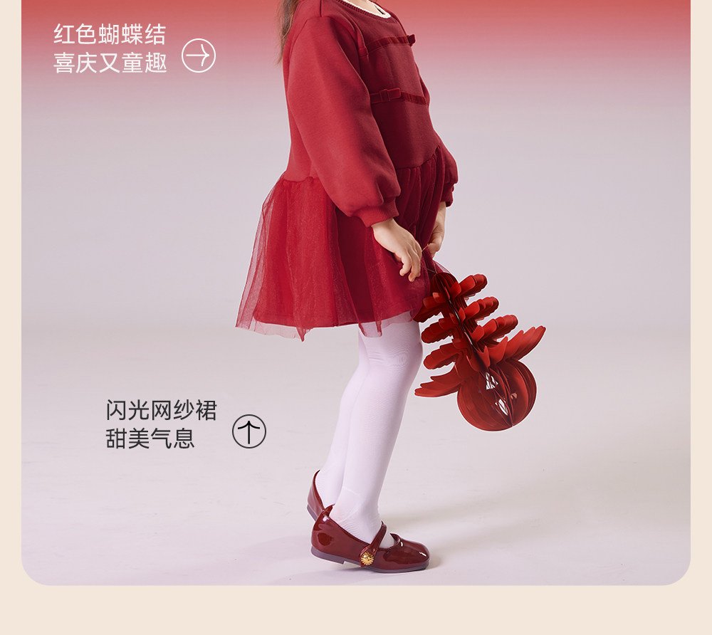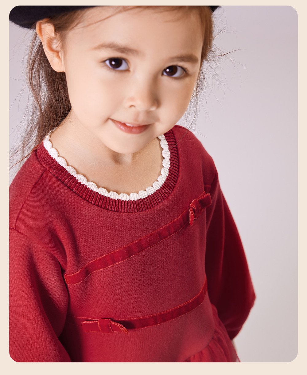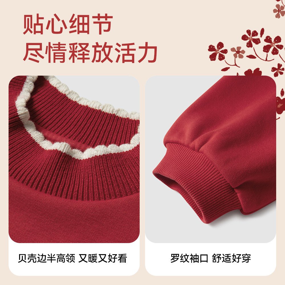 英氏女童连衣裙春季加绒秋冬儿童过年喜庆拜年服红色新年周岁裙子