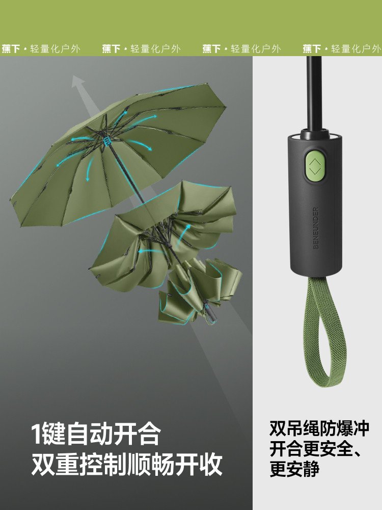 蕉下三折自动伞雨伞男女情侣加大加厚加固抗风暴反向折叠雨伞