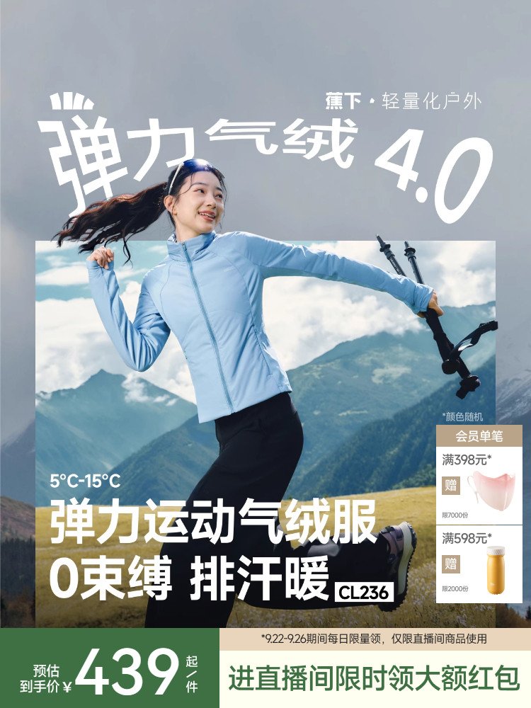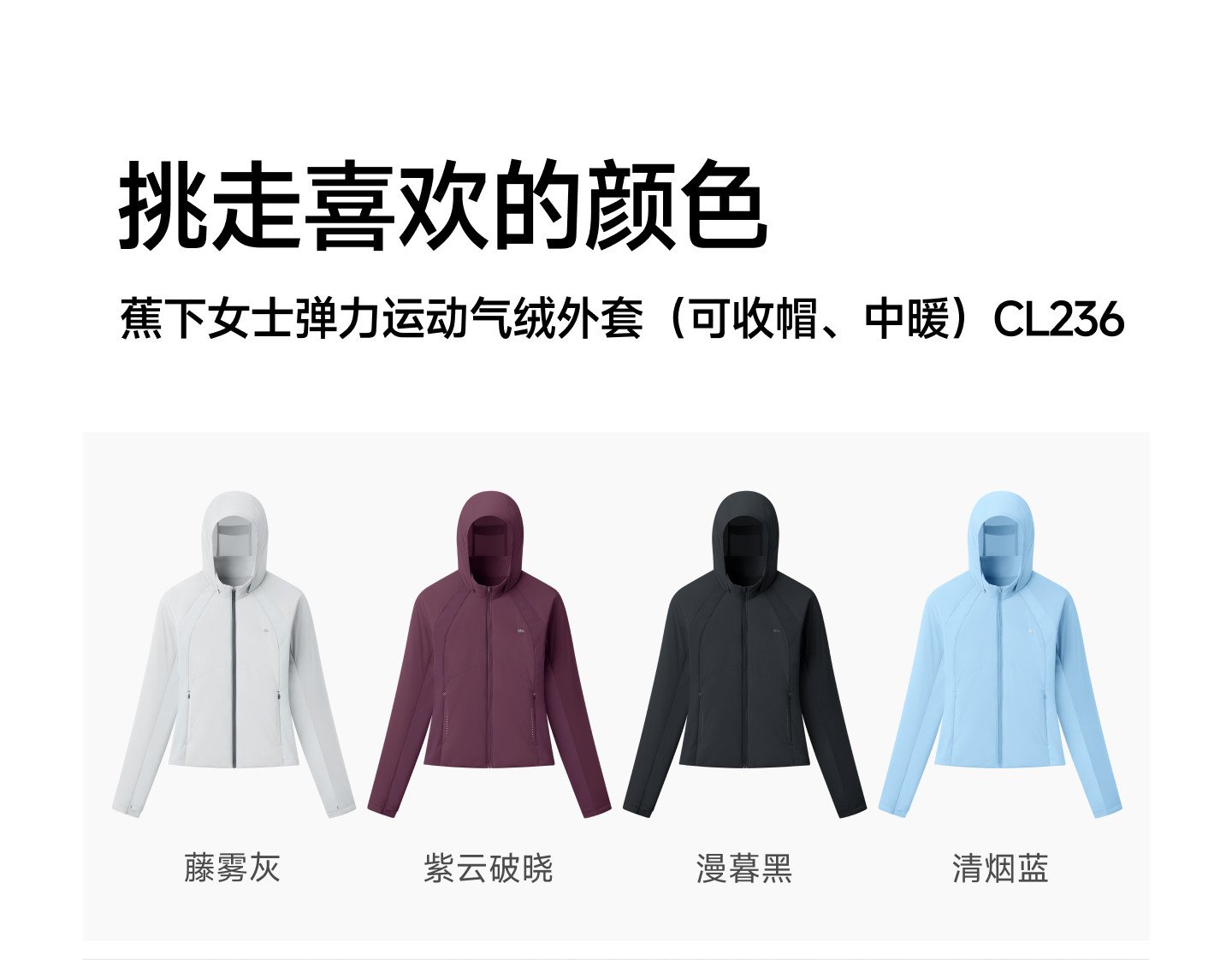 蕉下连帽运动气绒服秋季新款高弹轻薄亲肤保暖抗湿冷跑步夹棉外套