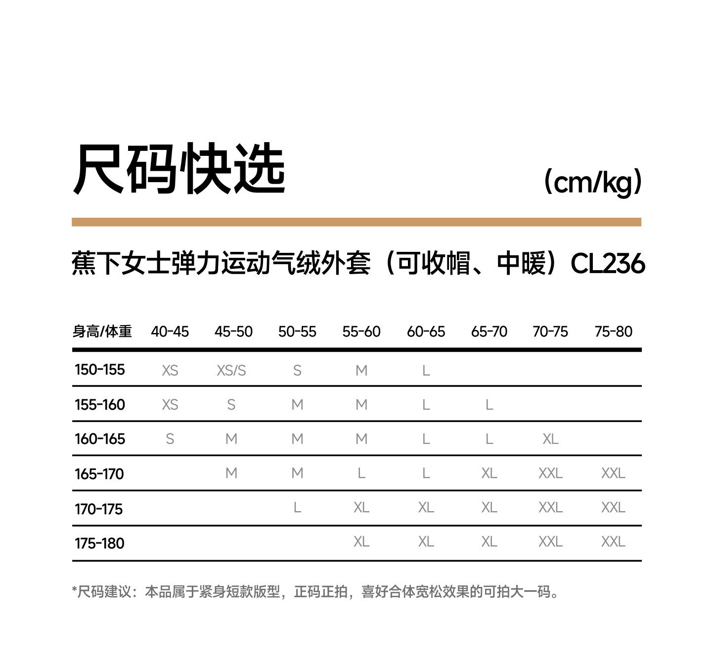 蕉下运动气绒服女新款高弹力棉衣保暖似羽绒冲锋衣内胆修身短外套 数量