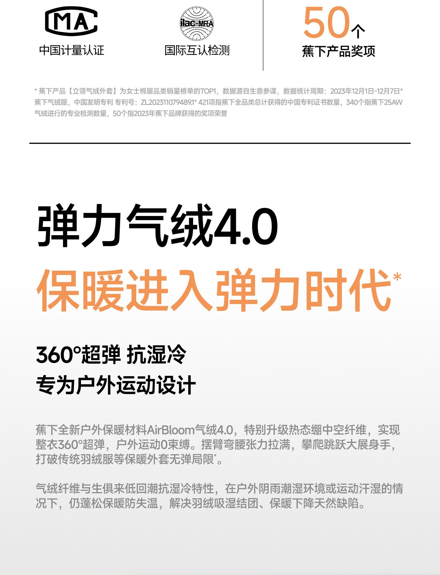 蕉下运动气绒服女新款高弹力棉衣保暖似羽绒冲锋衣内胆修身短外套