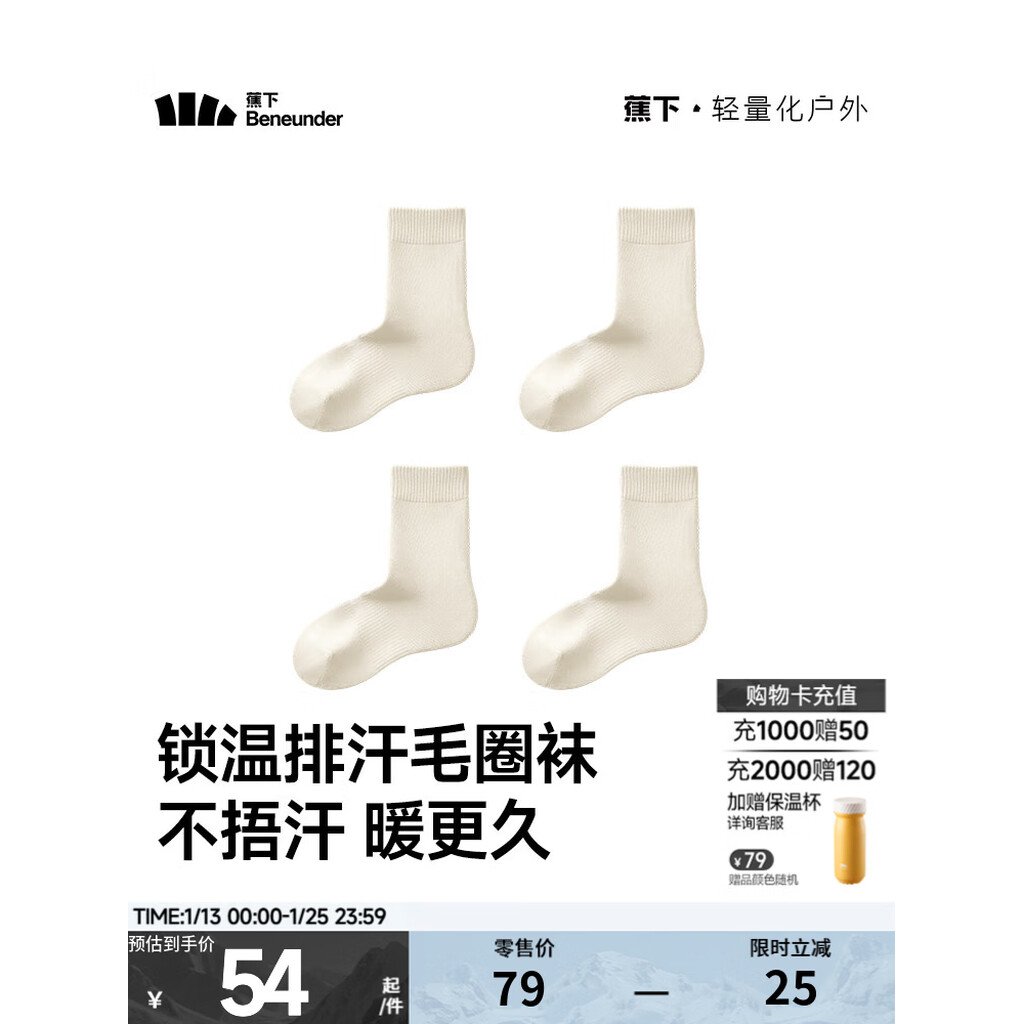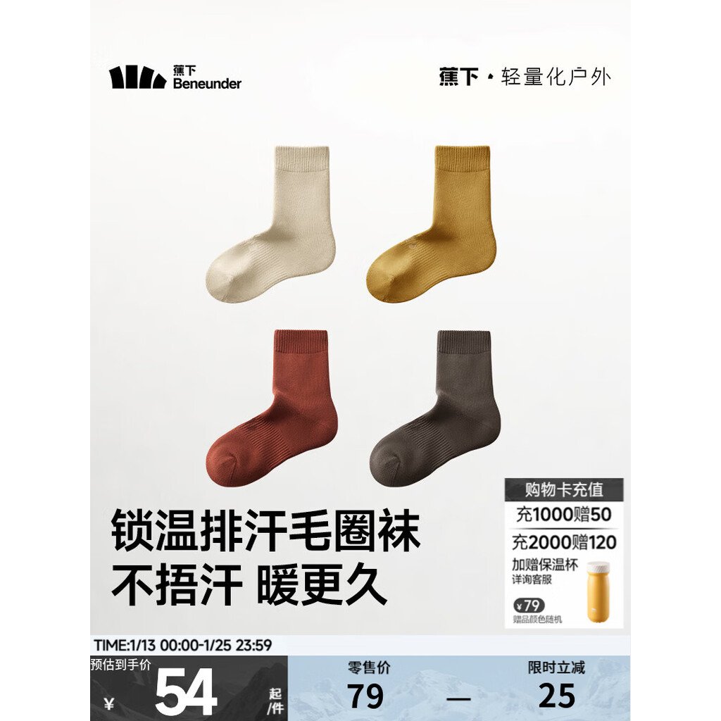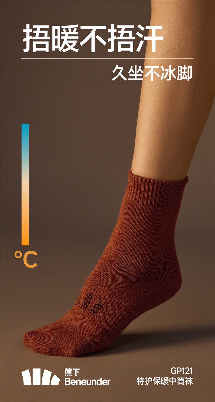 蕉下(beneunder)男女士中筒袜亲肤特护保暖秋冬吸汗保温百搭学生 漫暮黑 中筒 4双 M (40-45)