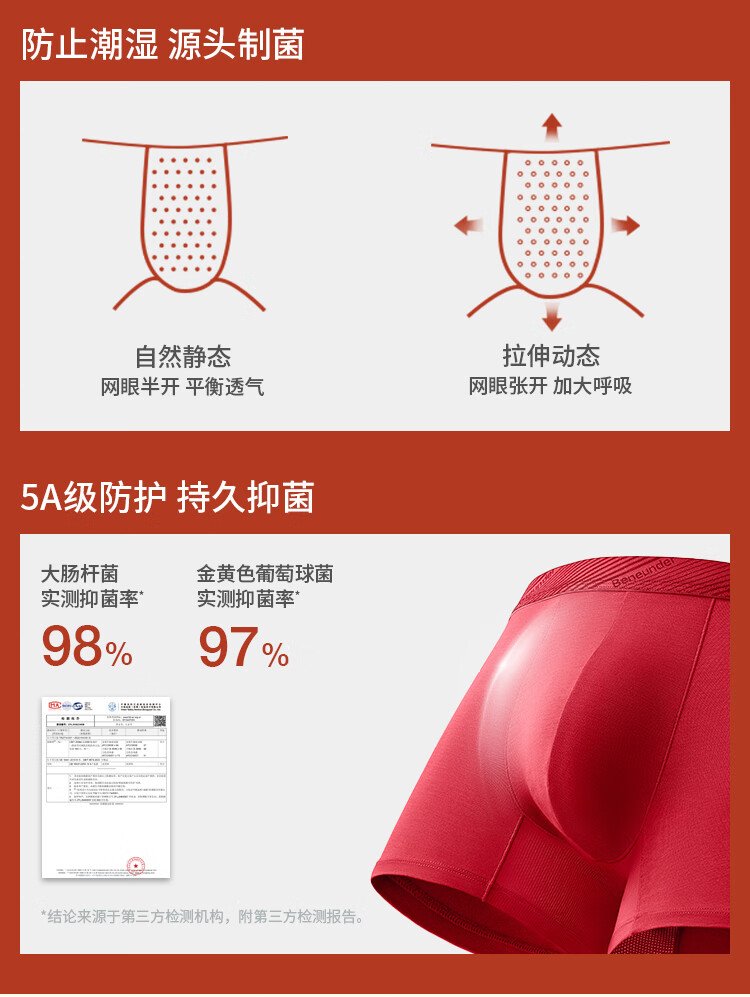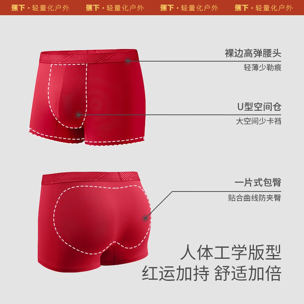 蕉内红色计划501C男士棉内裤10A抗菌平角本命马年骐骥红