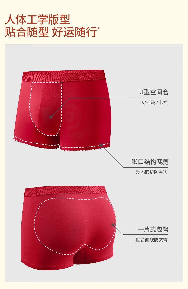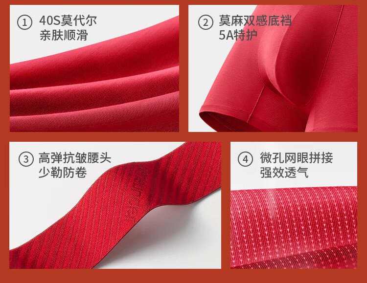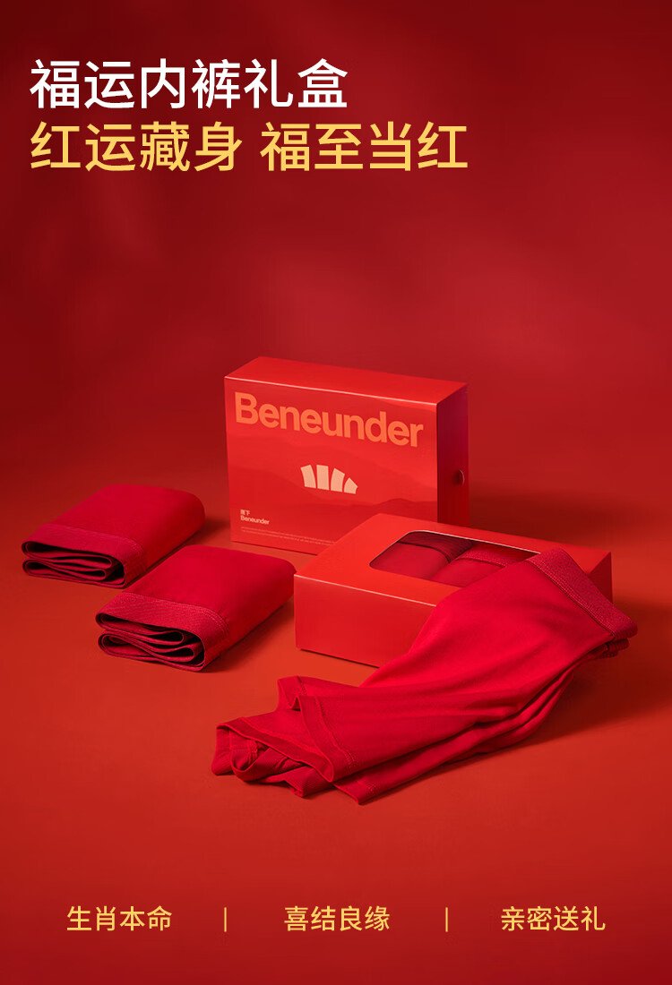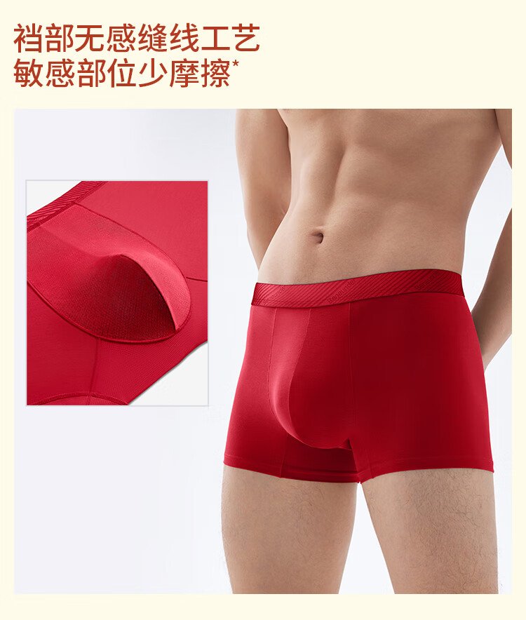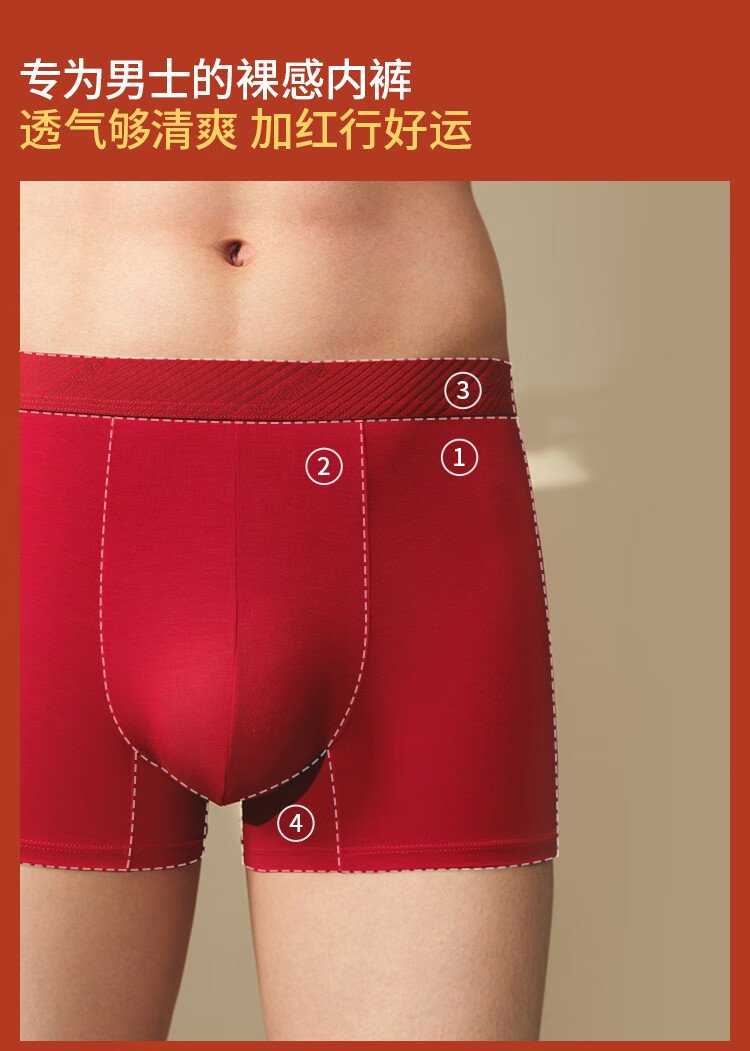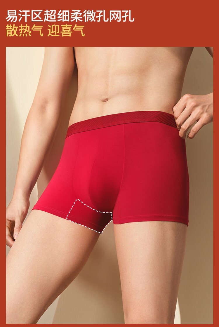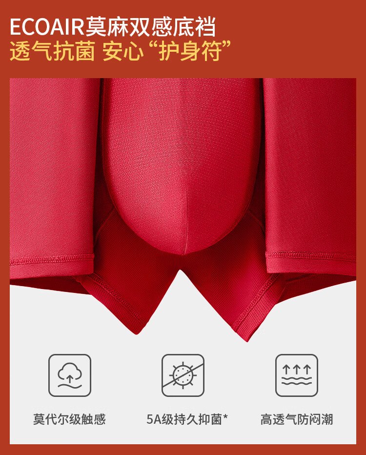 蕉下(beneunder)红色内裤男士本命年马年莫代尔抗菌内裤衩四平角裤礼盒 骐骥红 数量