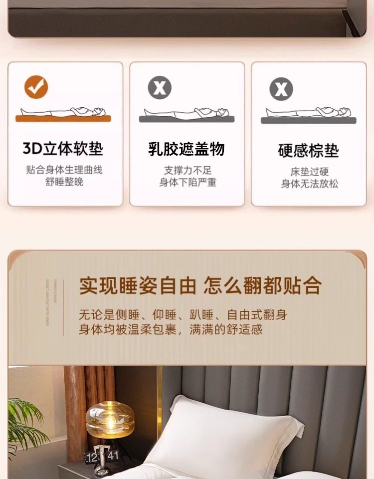 单人床 120x200cm【酒店式睡感 抗压防塌】