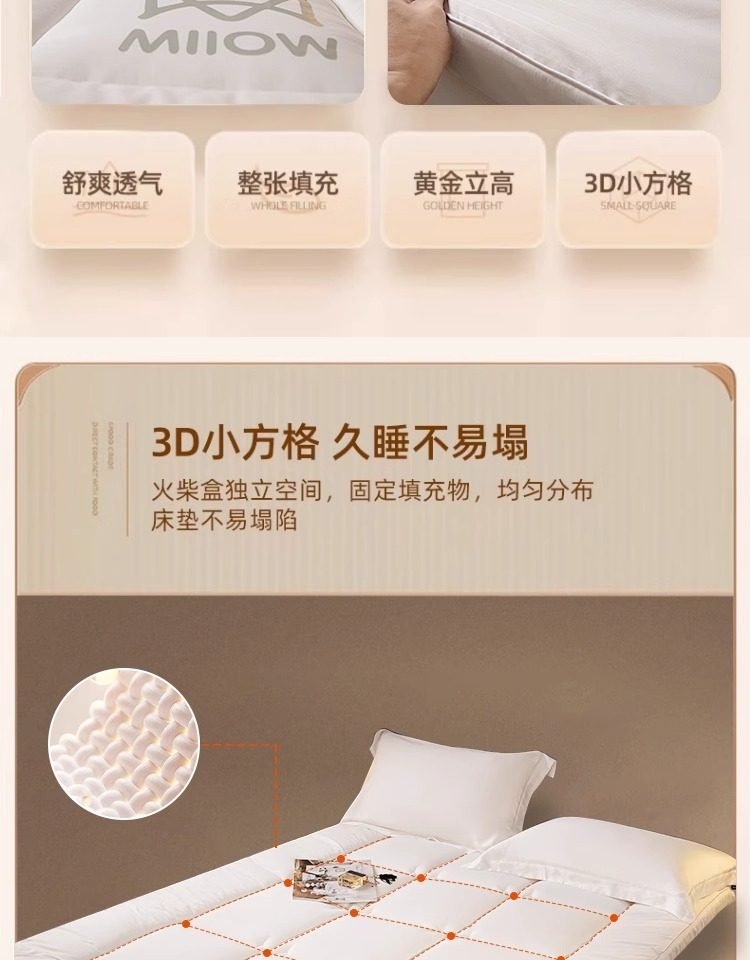 【约8cm厚】珍珠白【已质检✅A类母婴级面料 整张棉填充 黄金慢回弹】