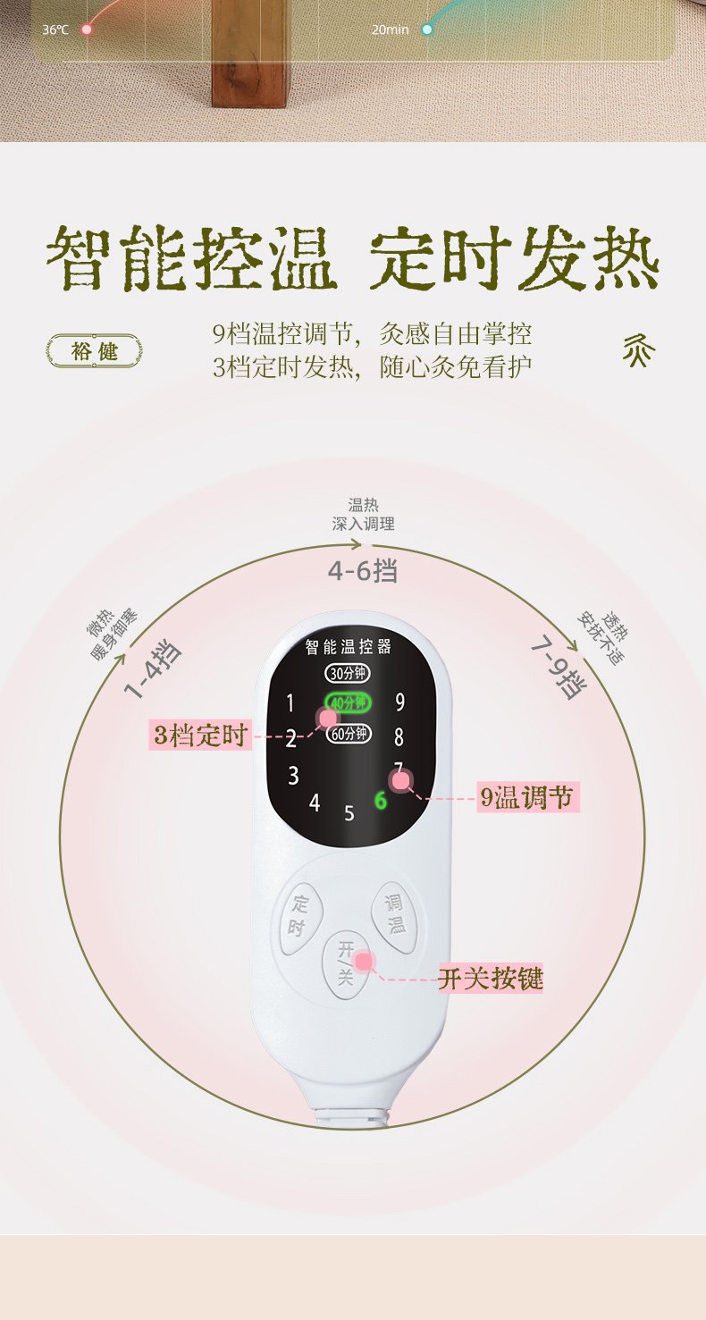 「送5片艾绒垫」12味药盐-插电热敷款【高温去痛】裸绿色
