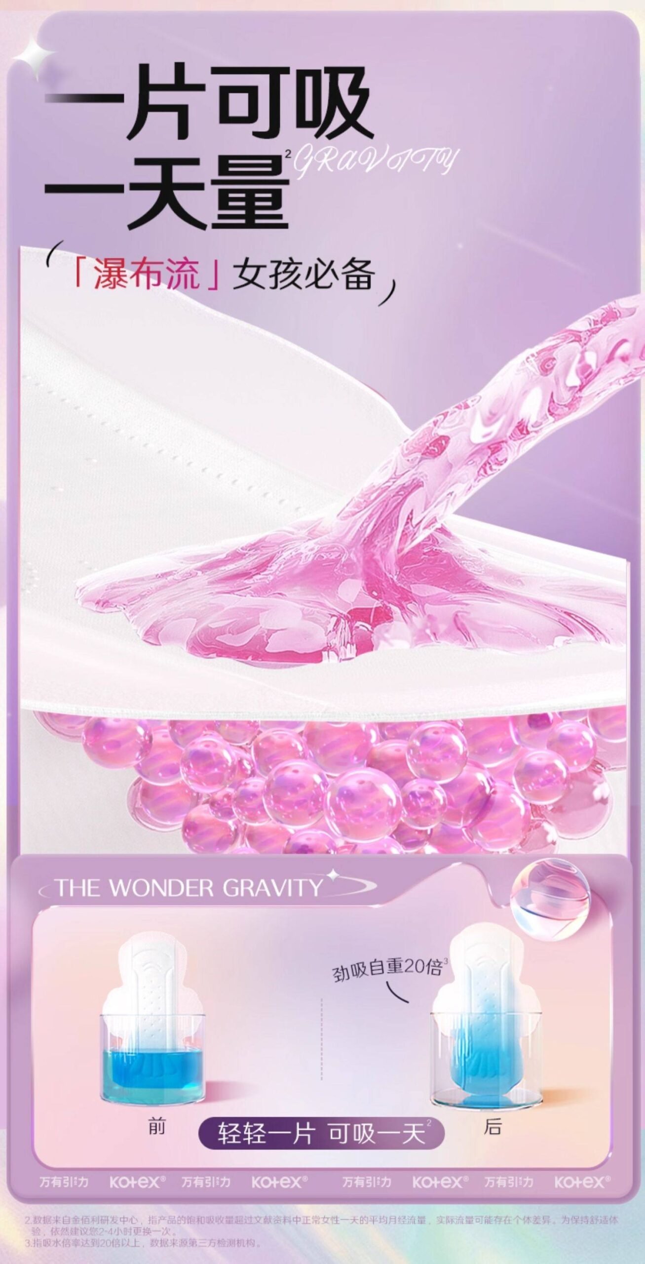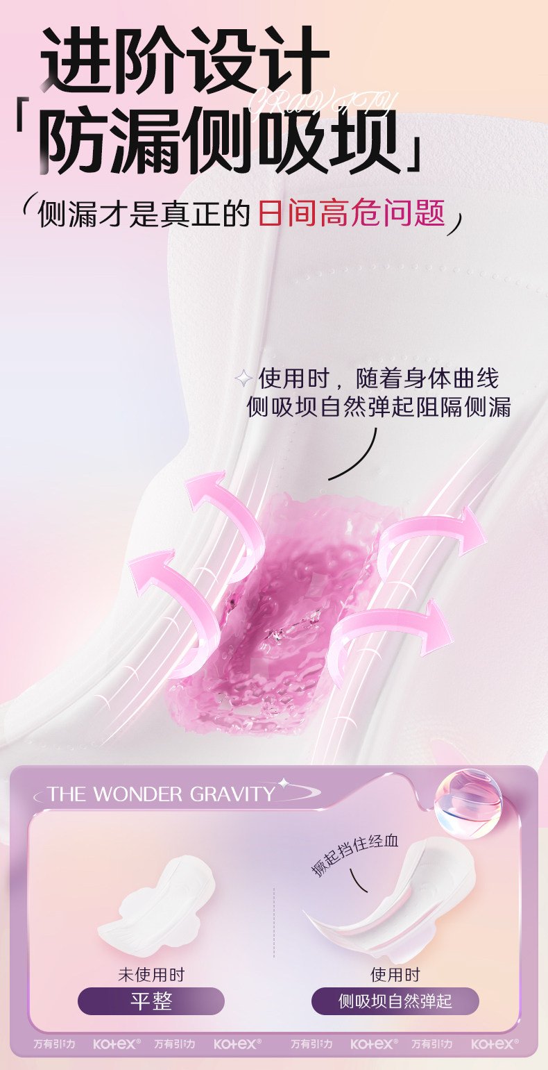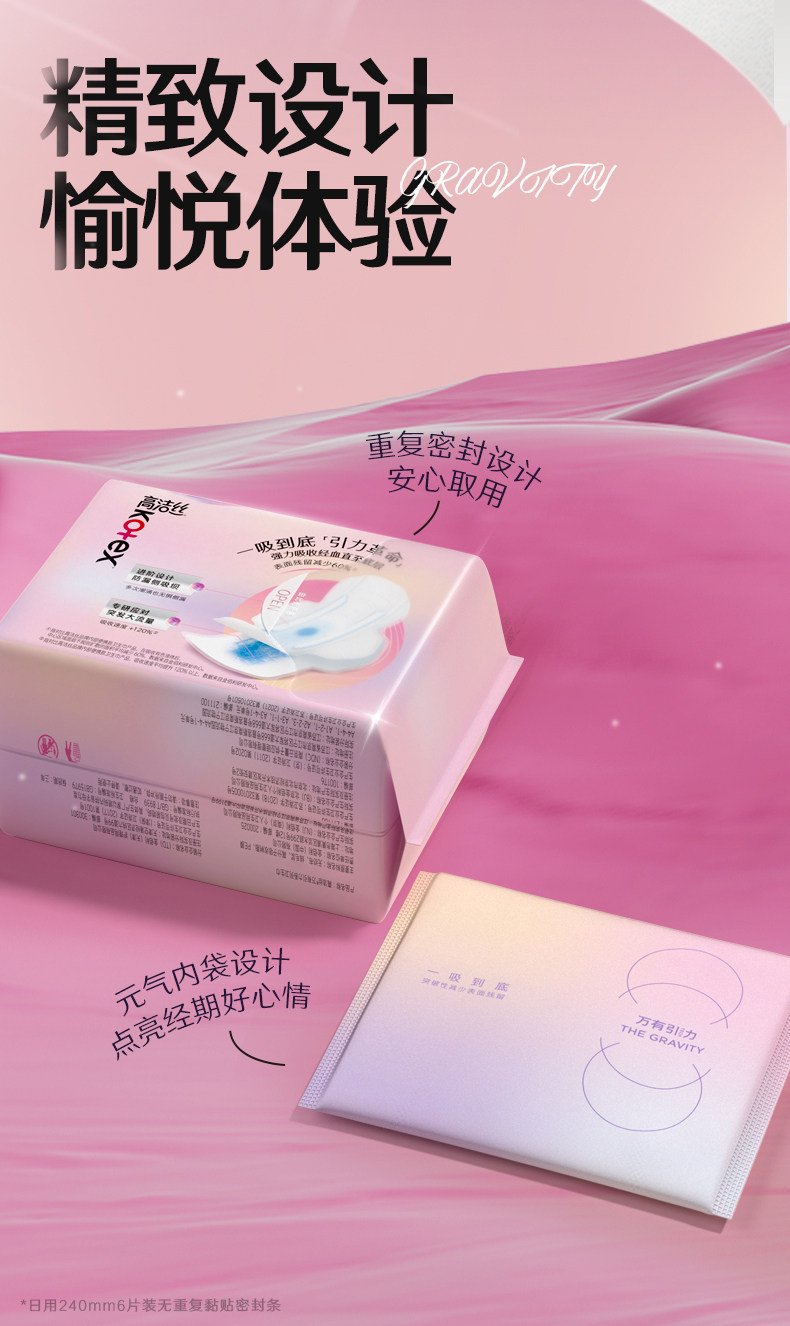高洁丝万有引力卫生巾姨妈巾量大防漏瞬吸日夜用