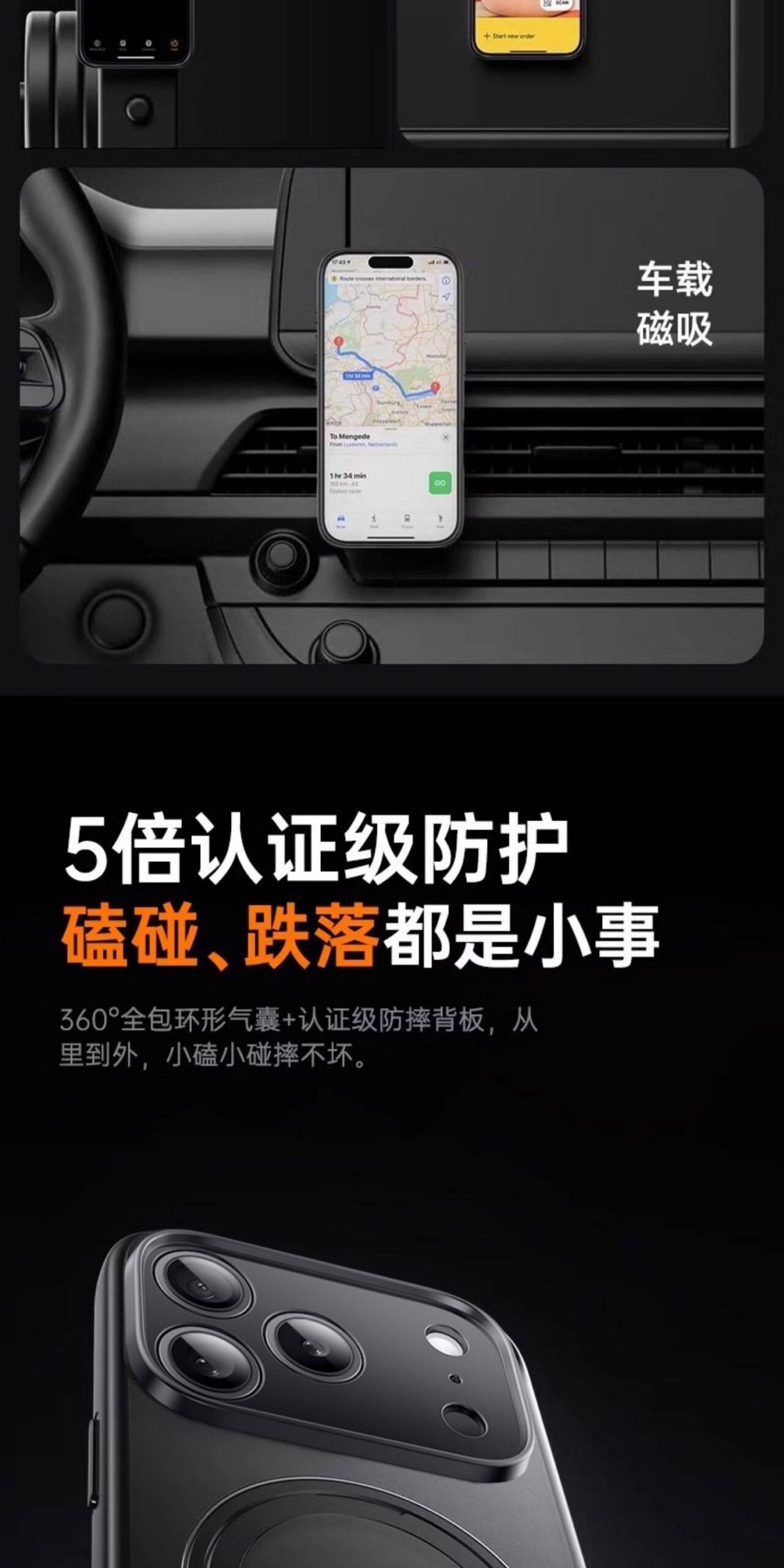 【360°旋转-磨砂黑】轻奢磨砂★强磁吸附★顶配防摔