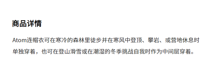 ARC’TERYX始祖鸟 ATOM HOODY 男子 保暖棉服