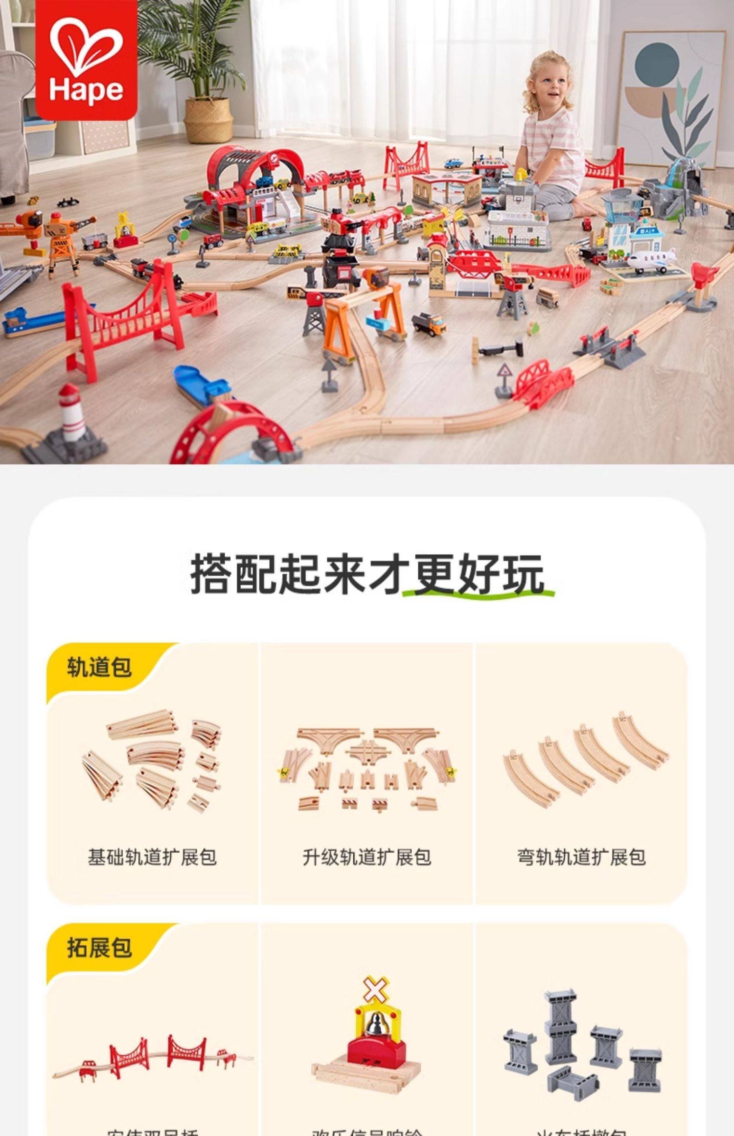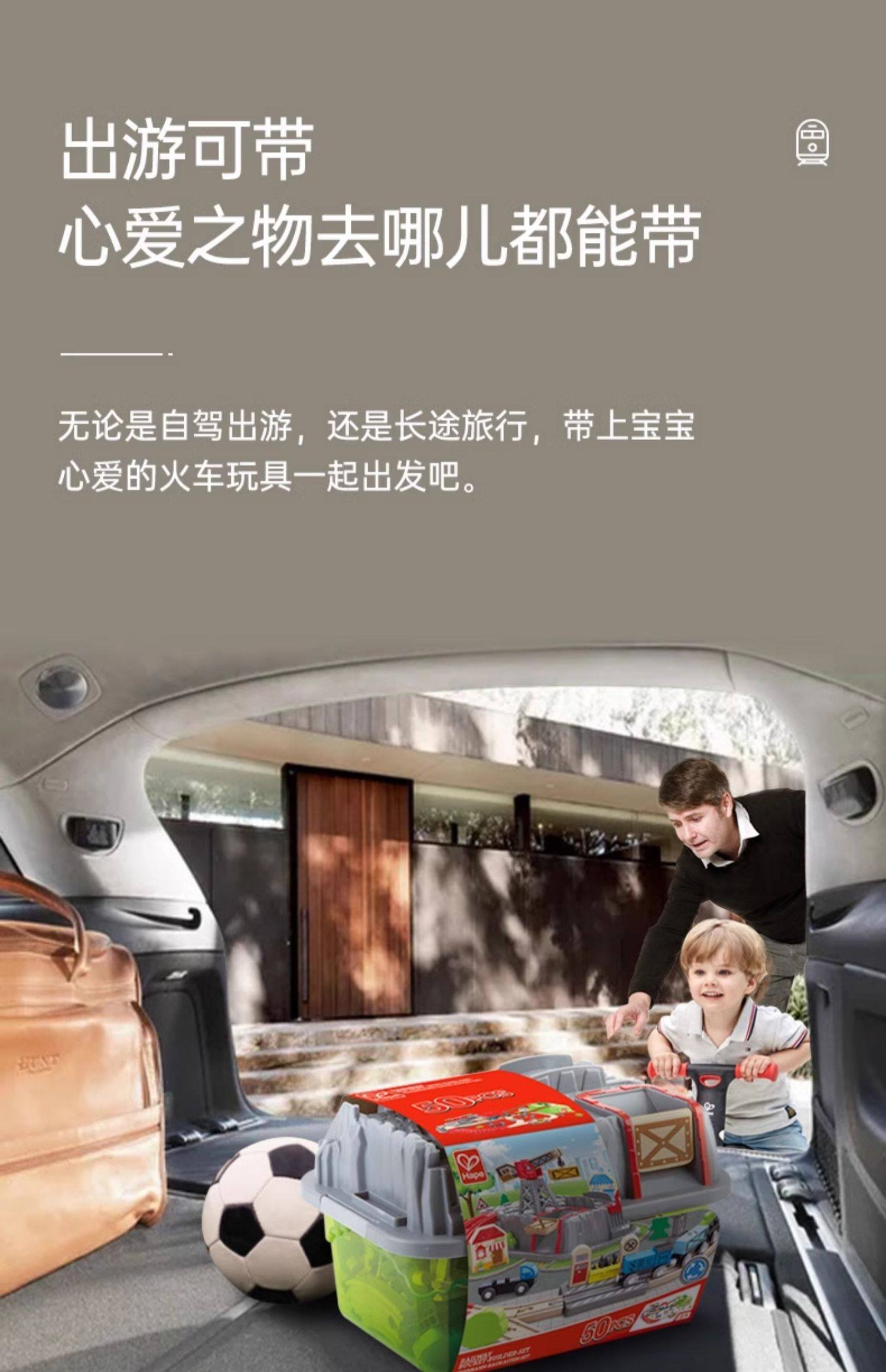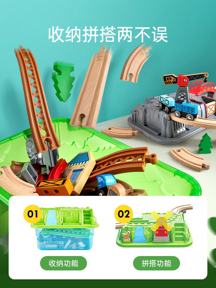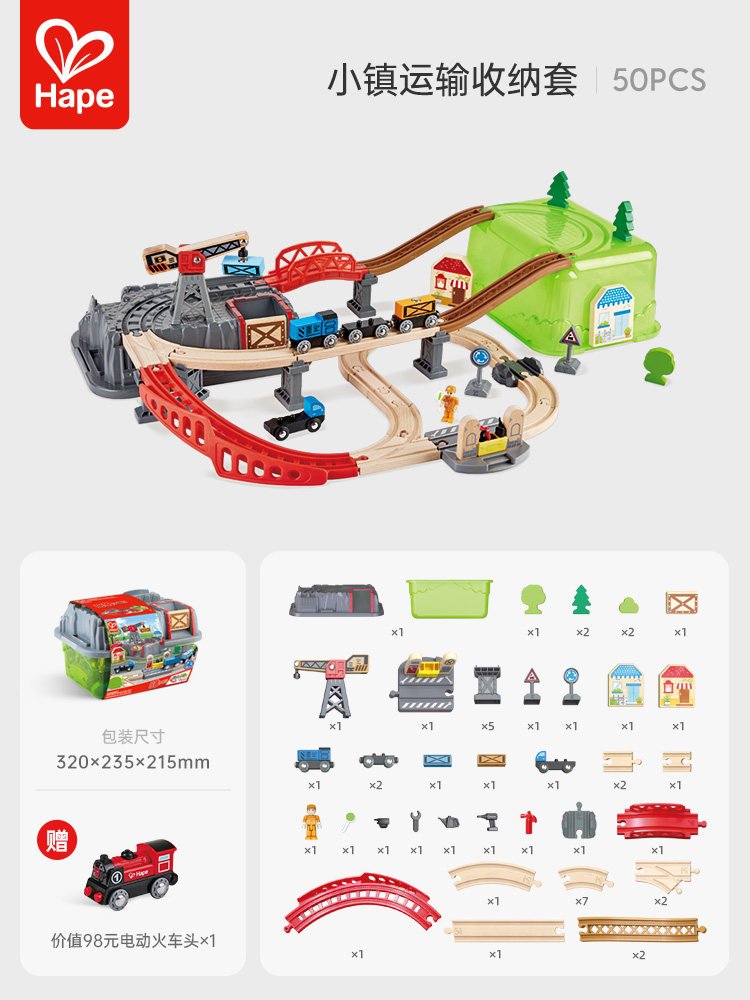 Hape木制火车轨道积木小镇运输收纳套装男孩女孩宝宝益智