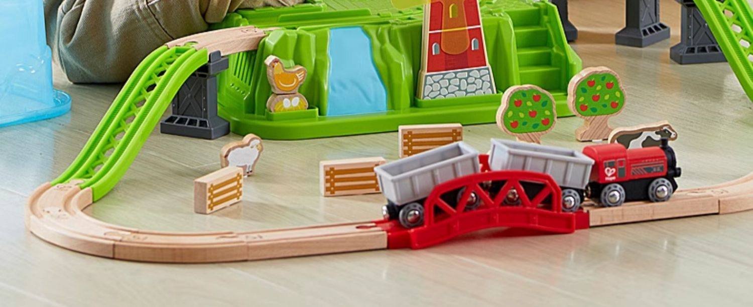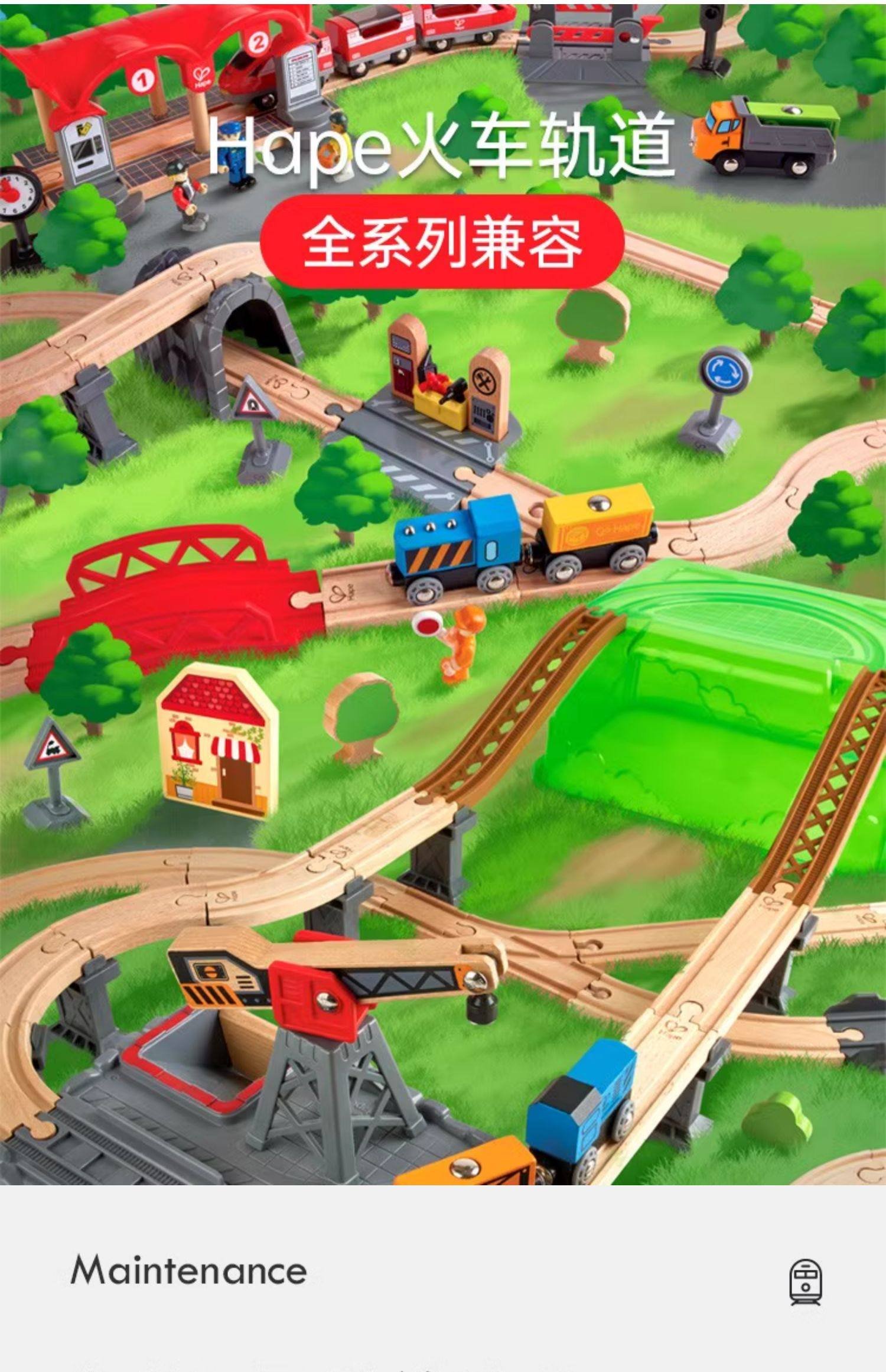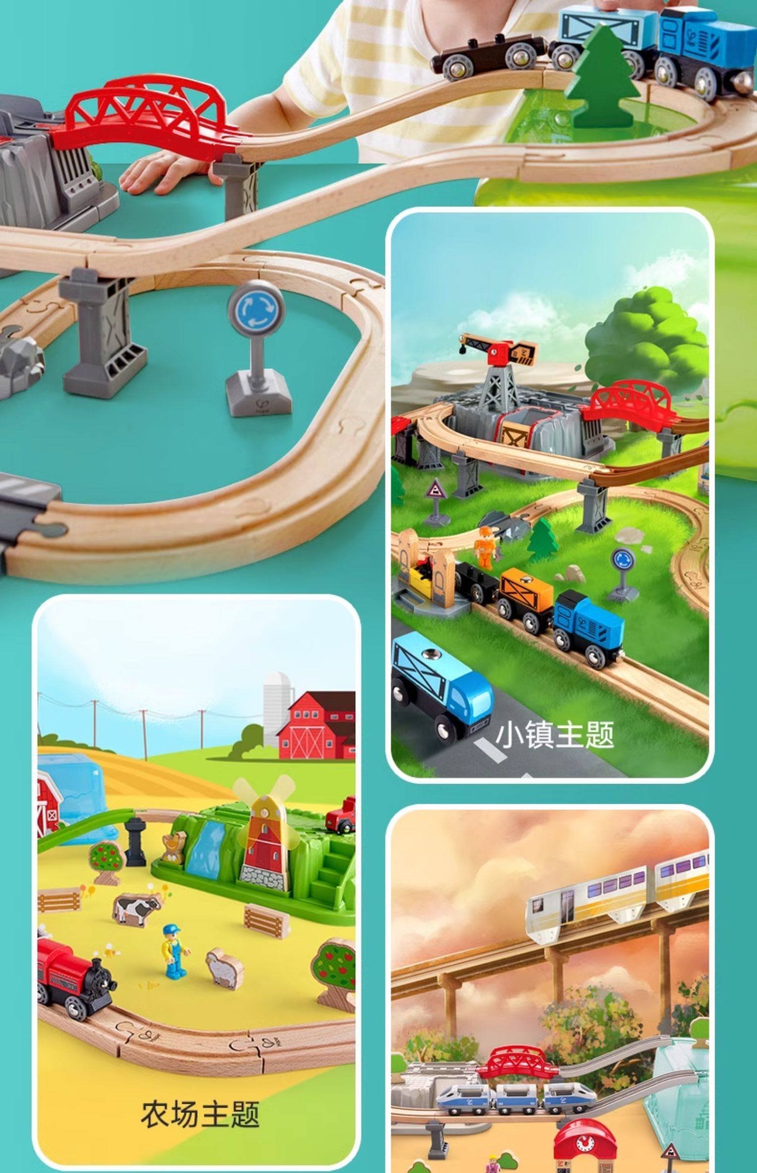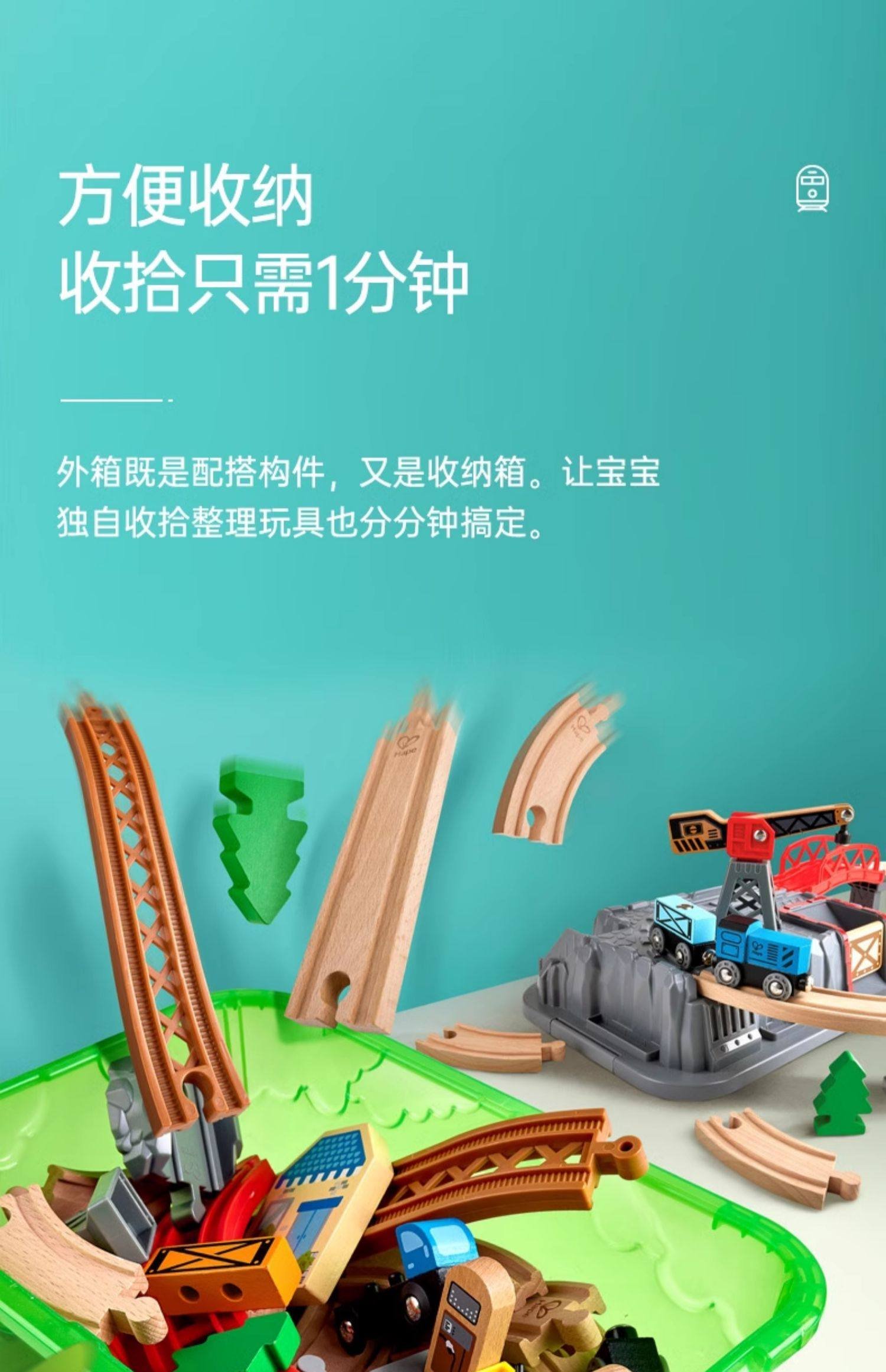 Hape木制火车轨道积木小镇运输收纳套装男孩女孩宝宝益智