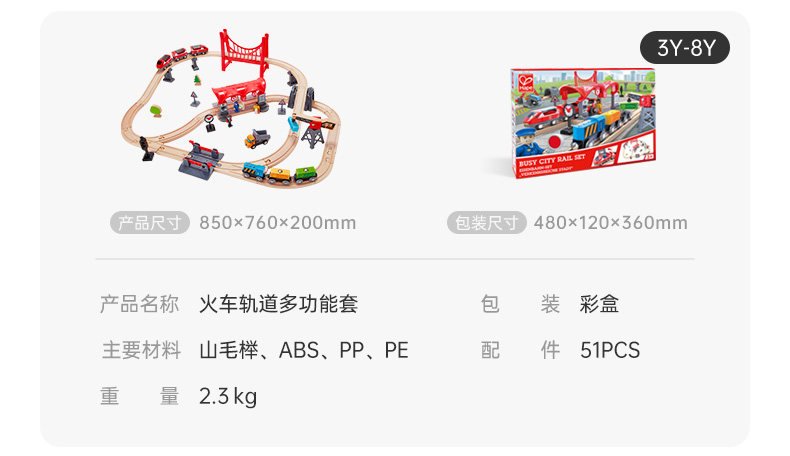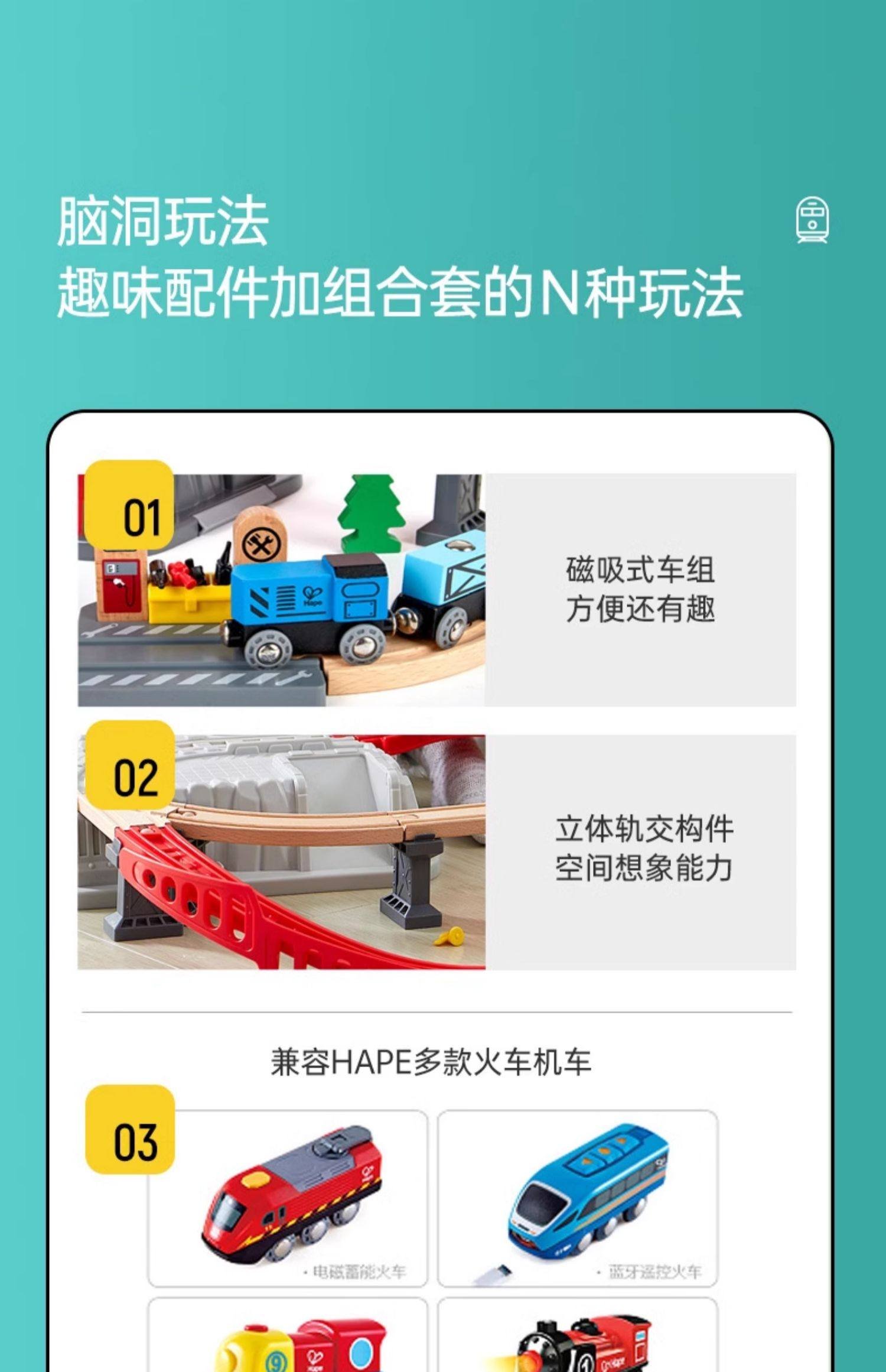 Hape木制火车轨道积木小镇运输收纳套装男孩女孩宝宝益智 数量