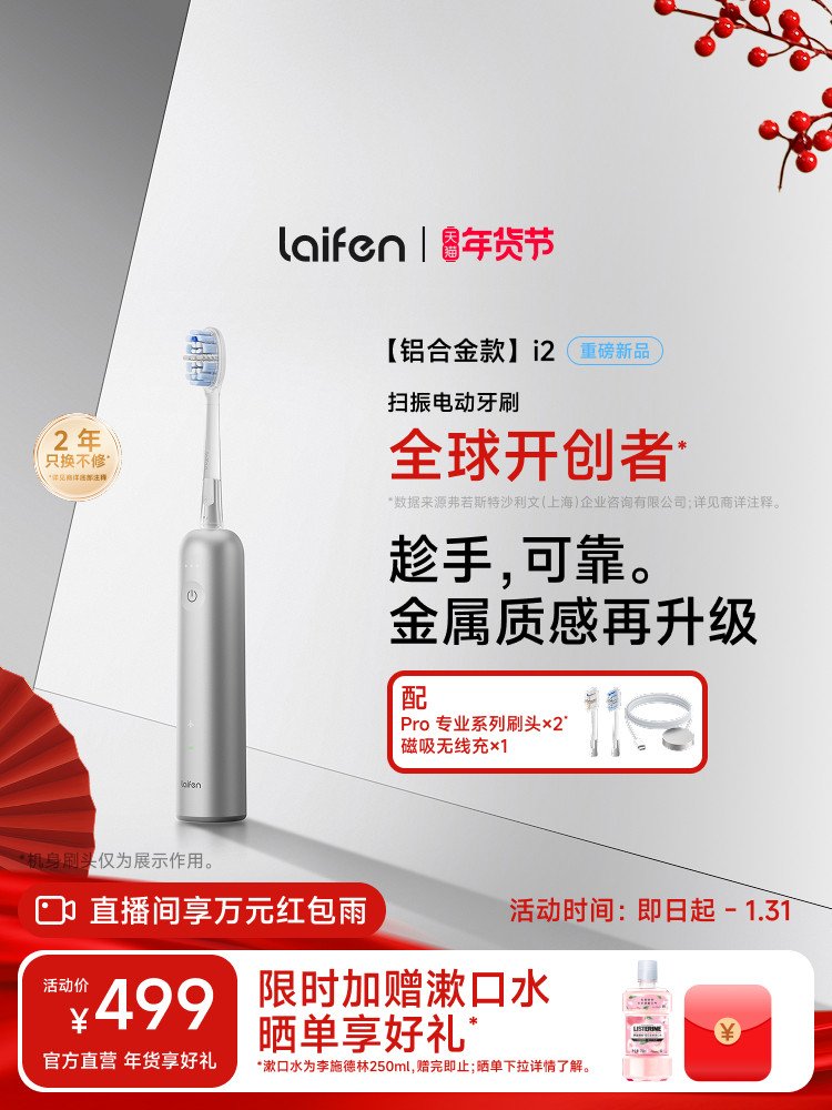 Laifen徕芬扫振电动牙刷i2成人情侣礼物男女软毛全自动智能铝合金 数量