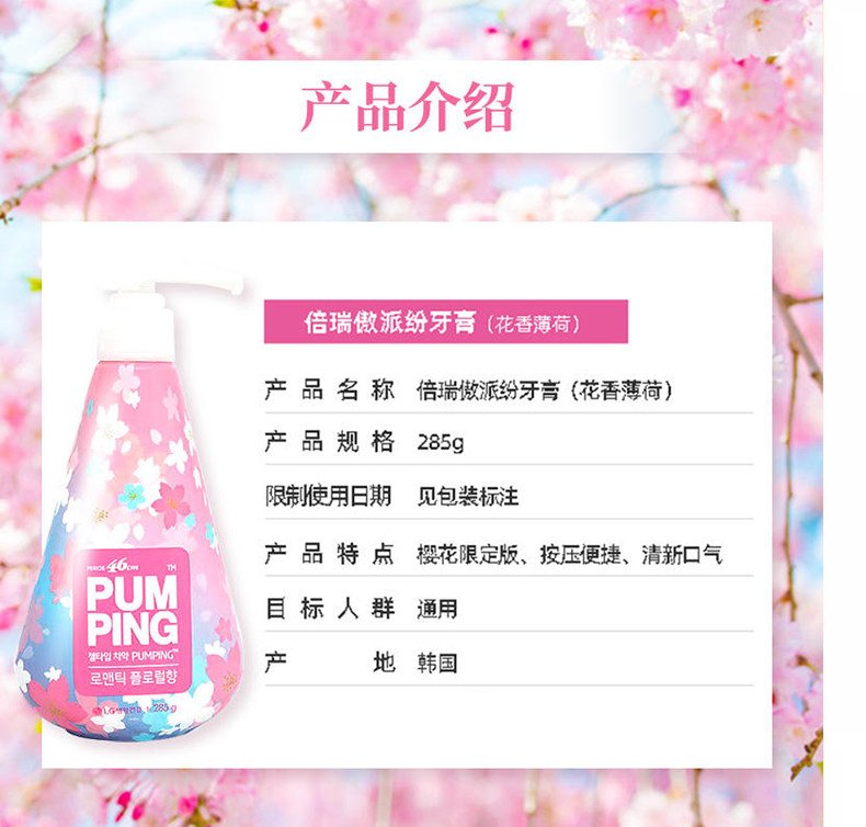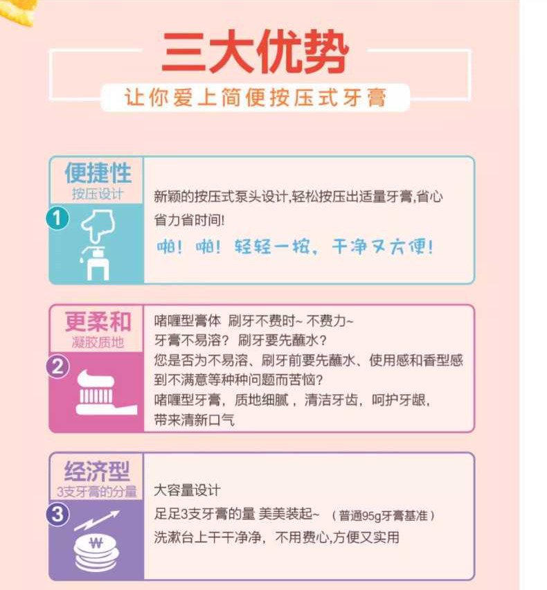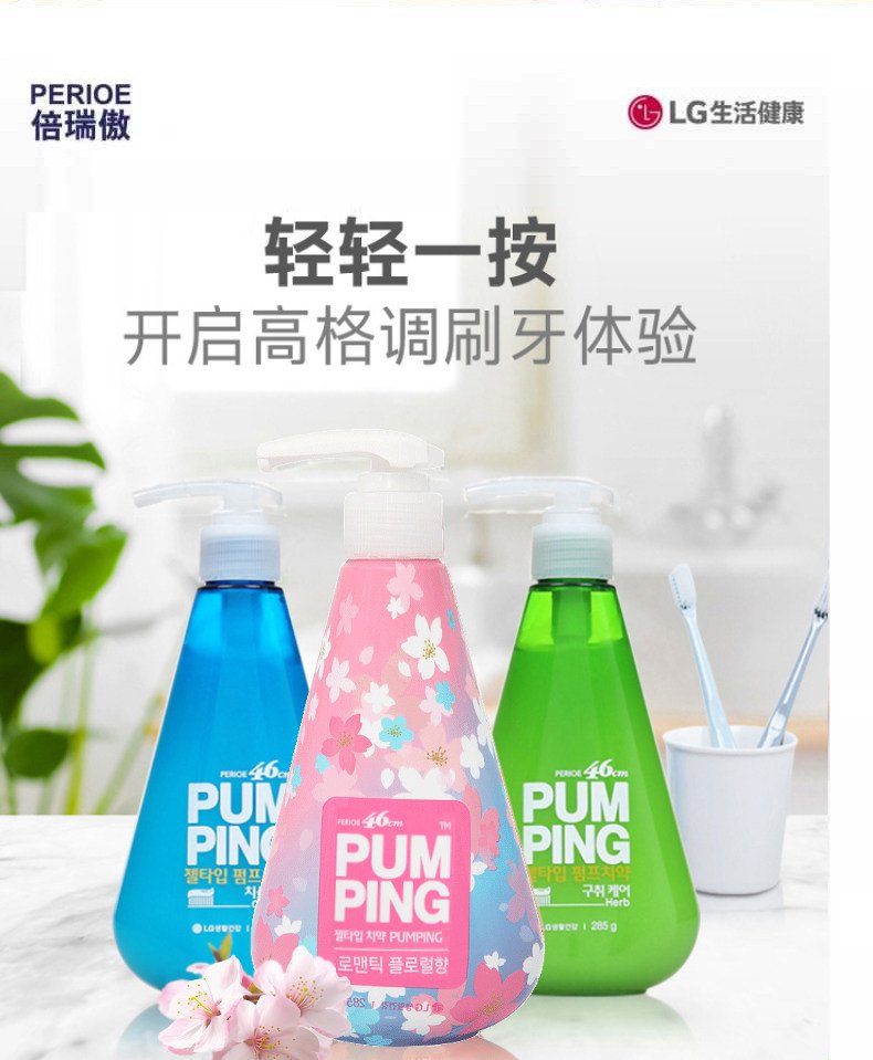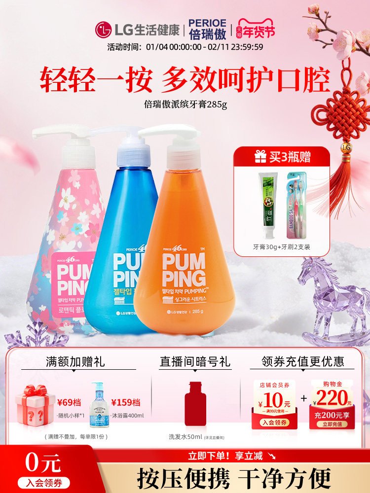 LG生活健康 海外进口 倍瑞傲牙膏按压式 285g 3瓶装 数量