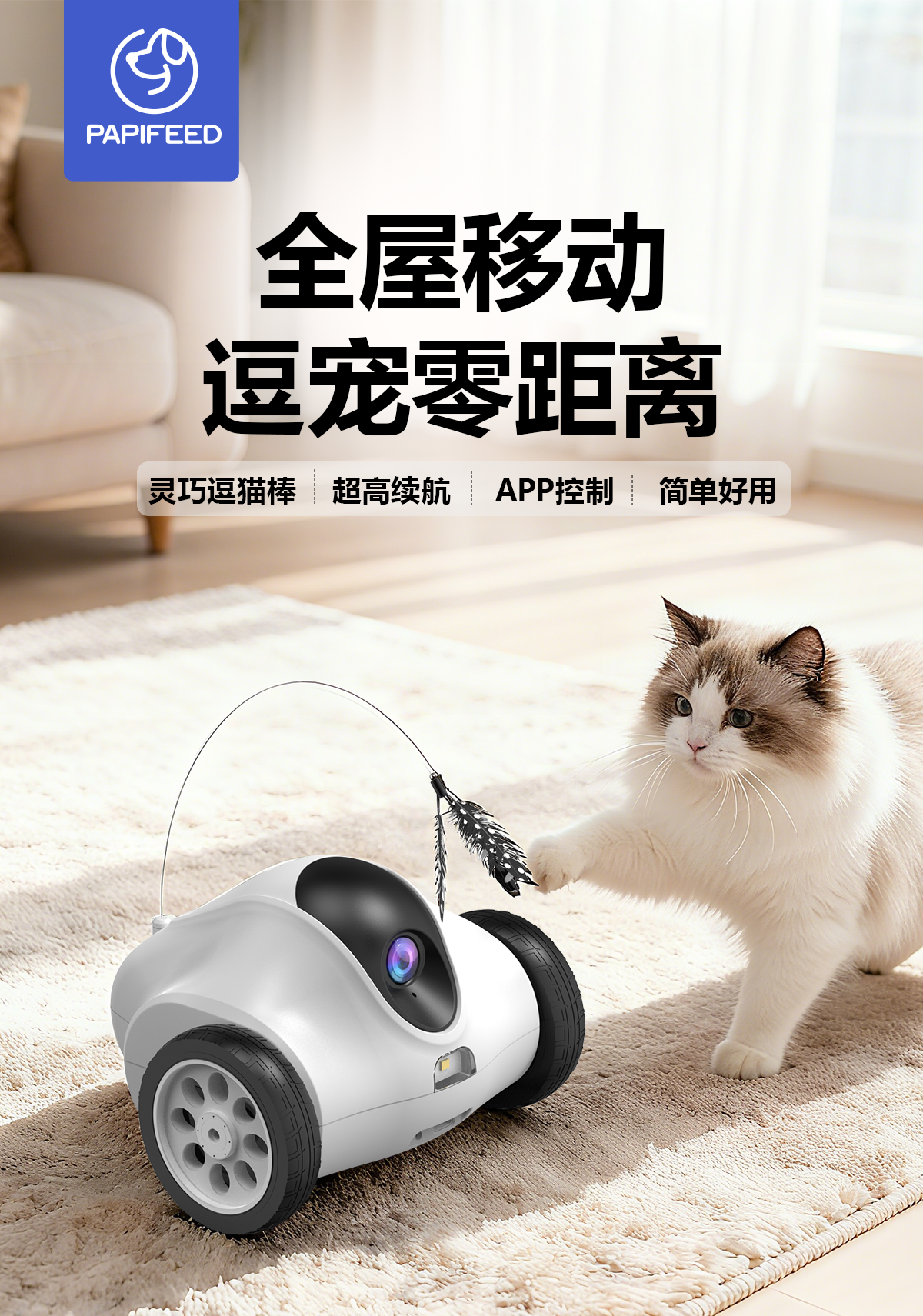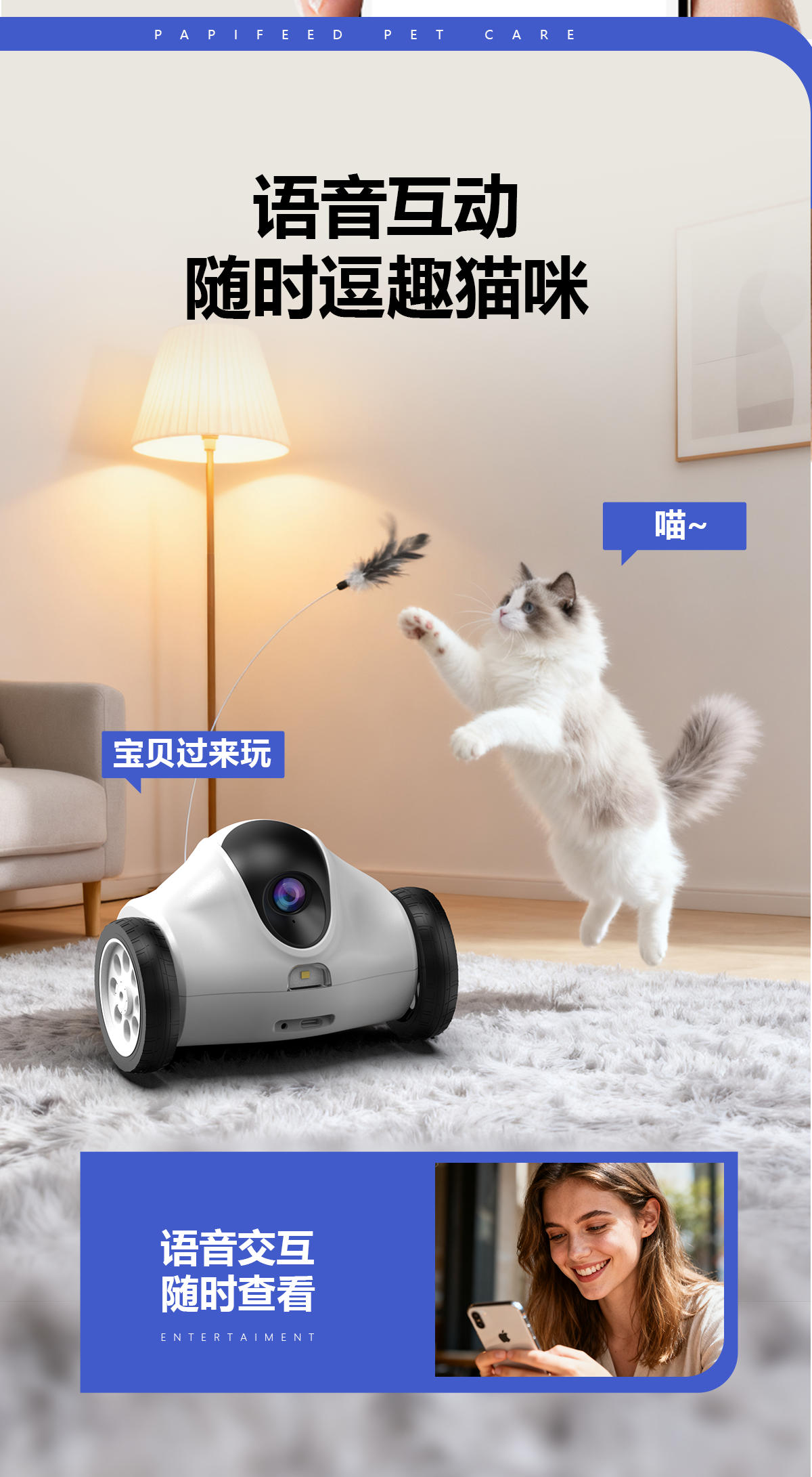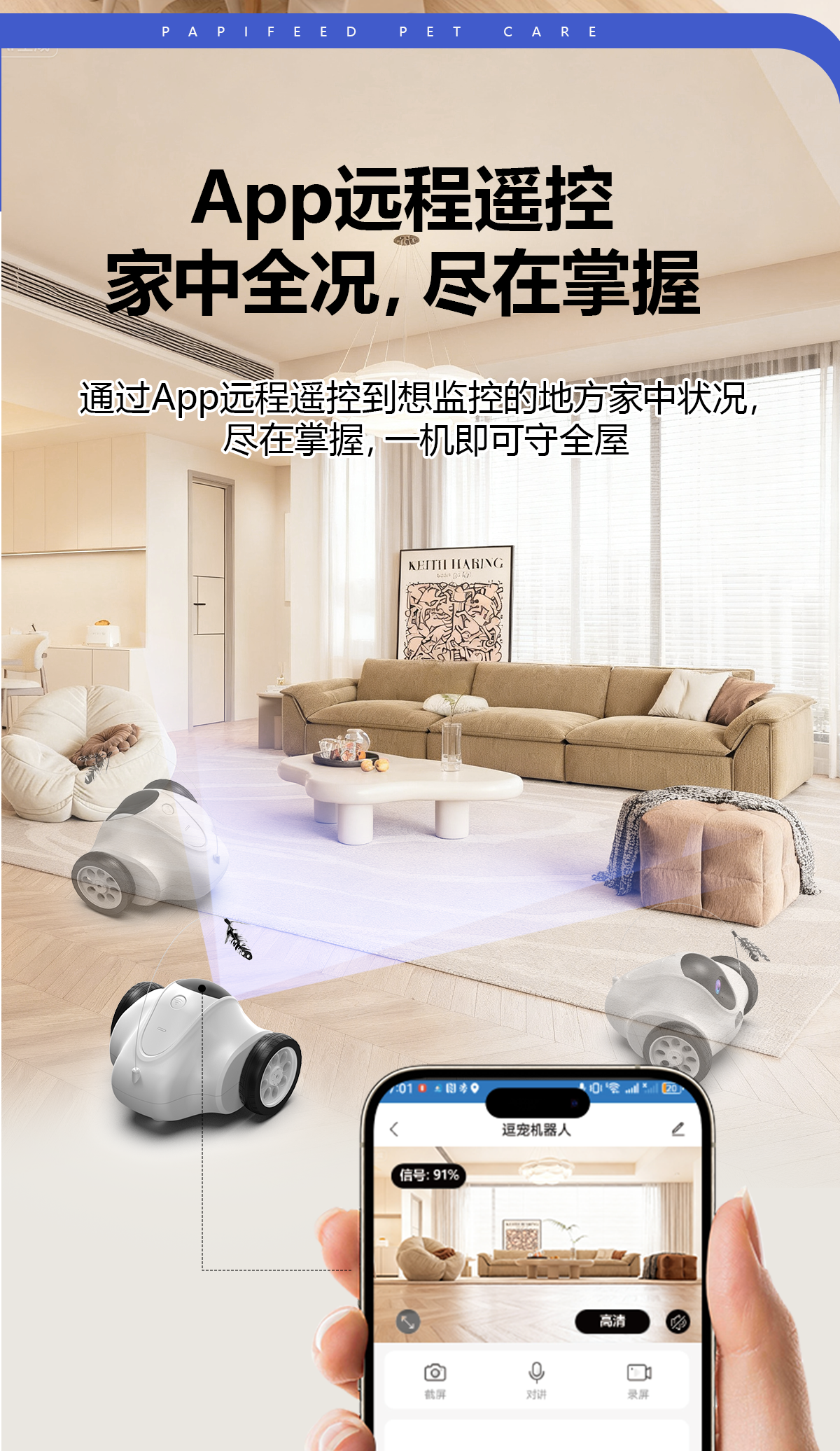 PAPIFEED宠物监控可移动家用网络摄像头视频语音双向对讲陪伴猫狗