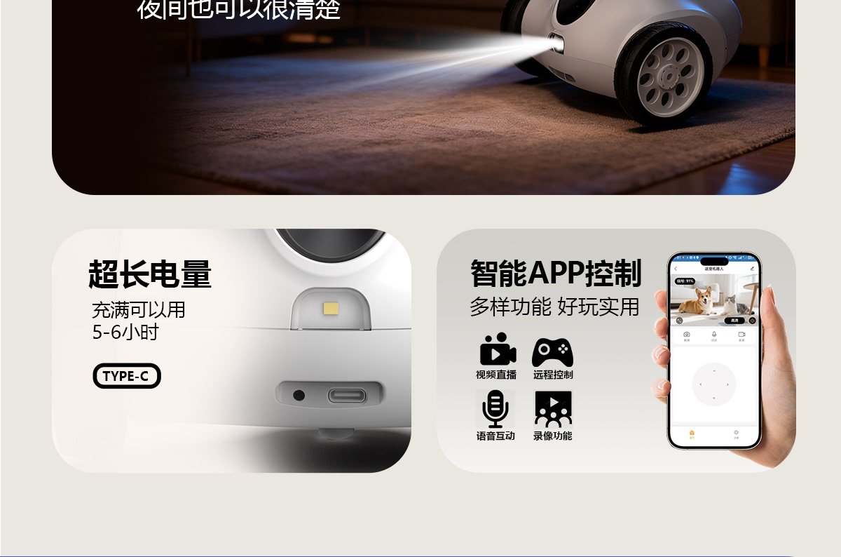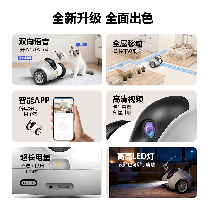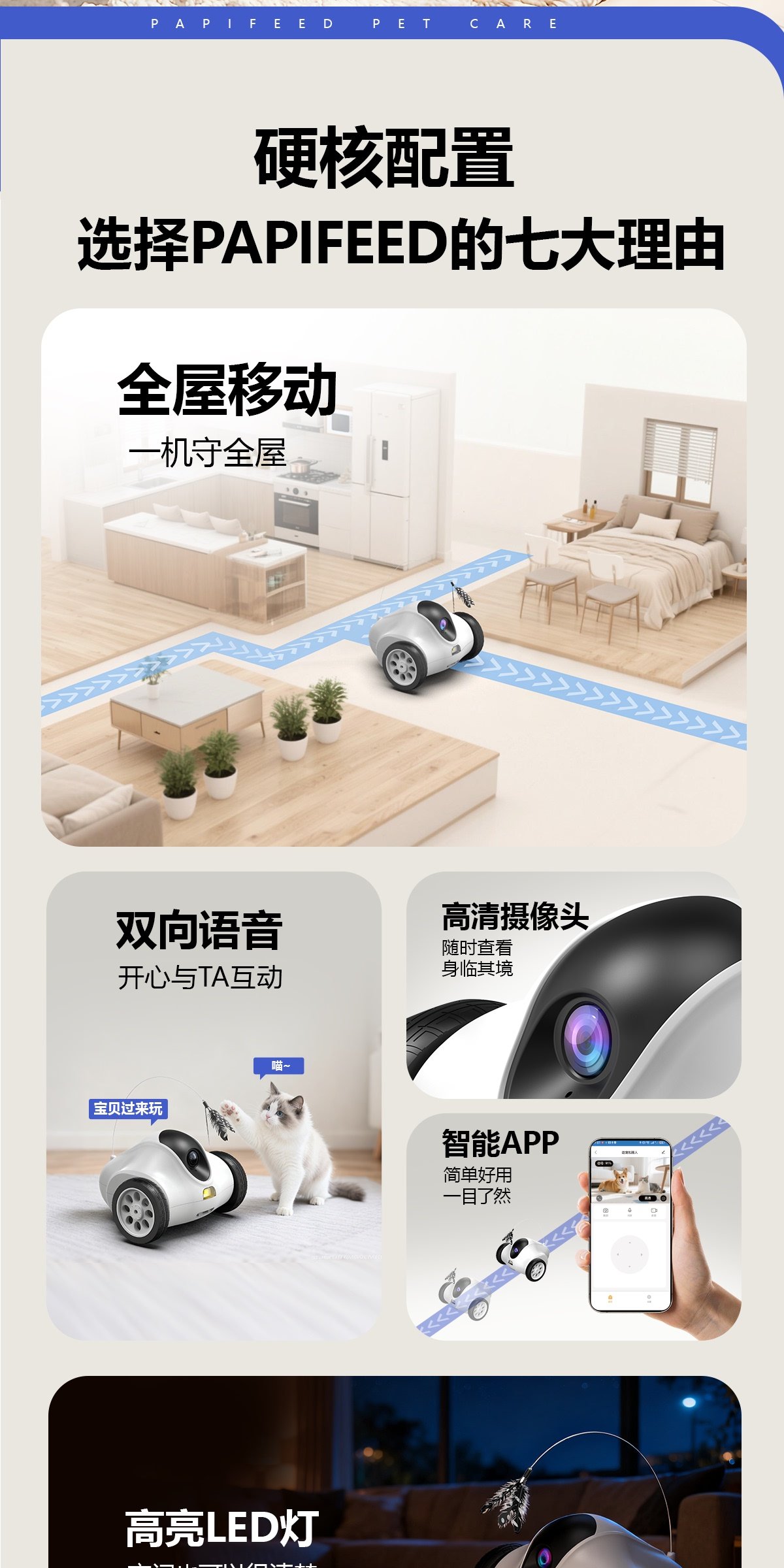 PAPIFEED宠物监控可移动家用网络摄像头视频语音双向对讲陪伴猫狗