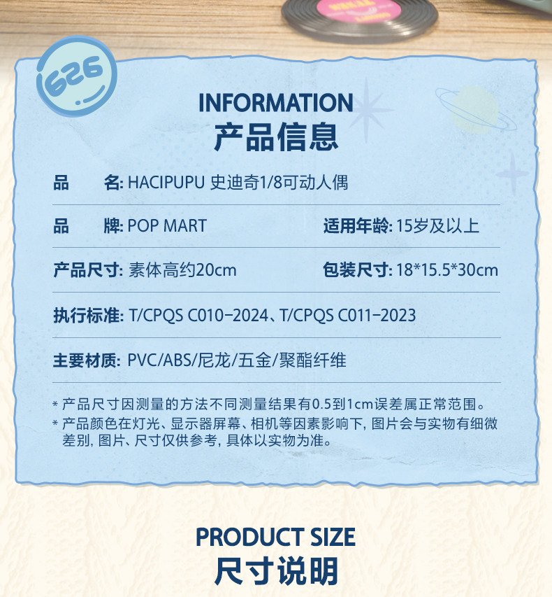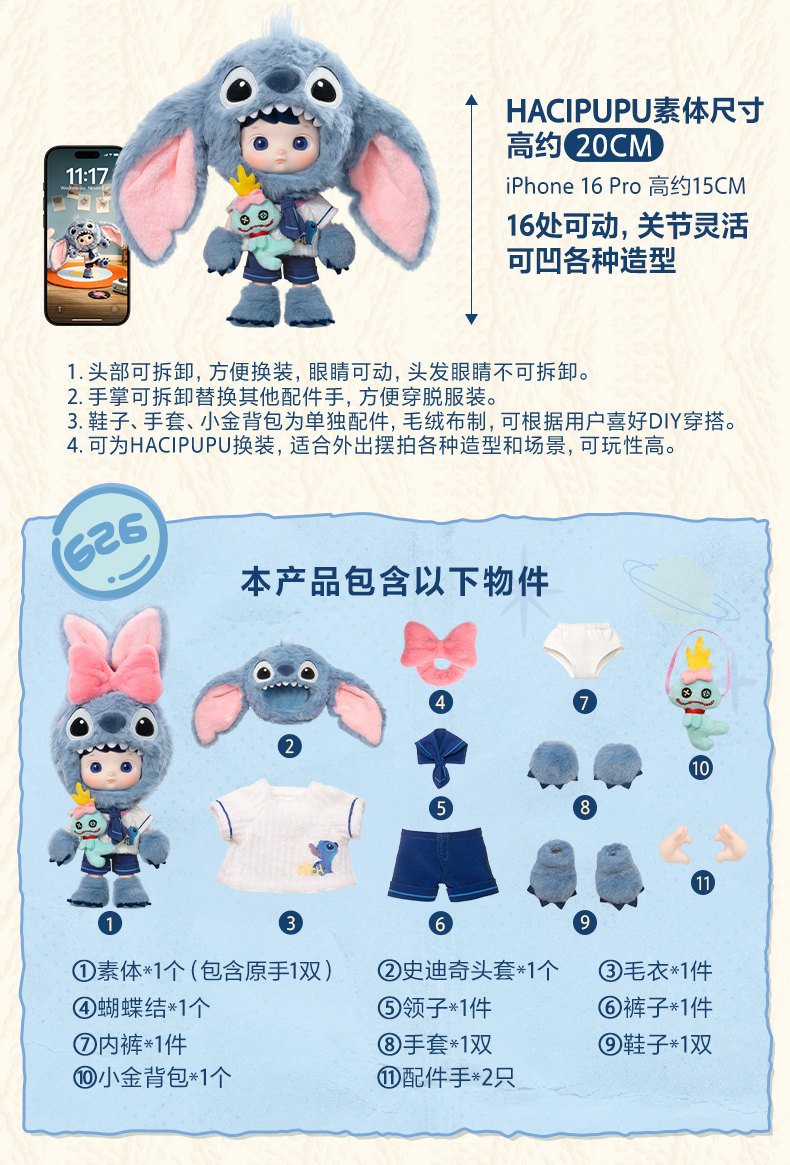 POPMART泡泡玛特HACIPUPU 史迪奇1/8可动人偶玩具礼物摆件 数量