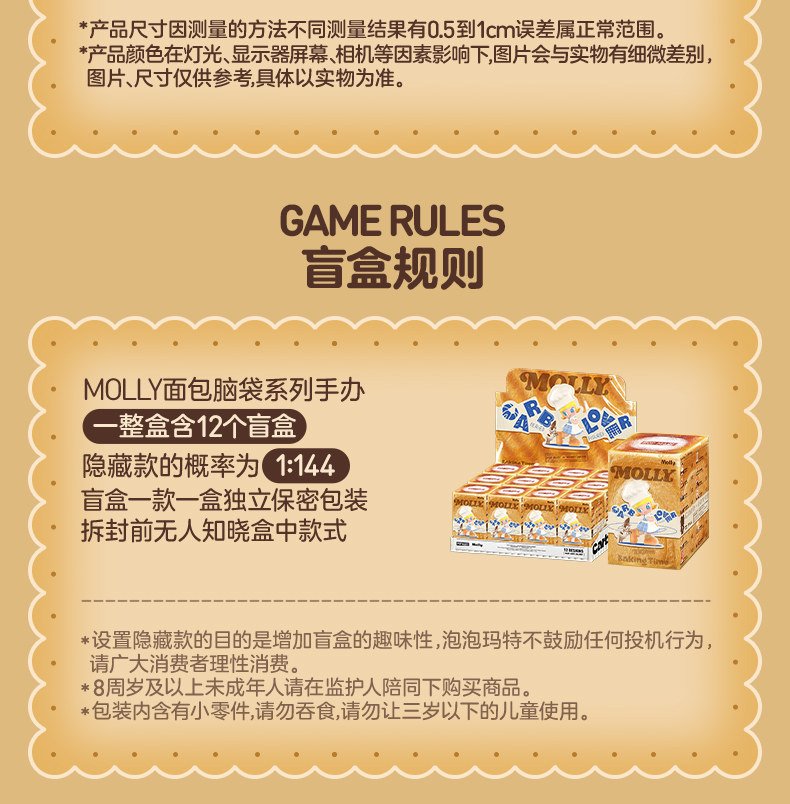 POPMART泡泡玛特MOLLY面包脑袋系列手办盲盒玩具摆件礼物 数量