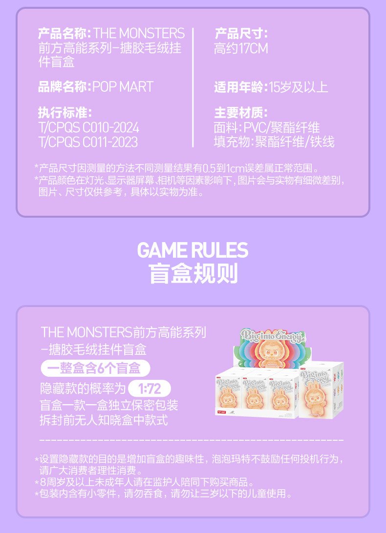 POPMART泡泡玛特THE MONSTERS 前方高能搪胶毛绒挂件盲盒