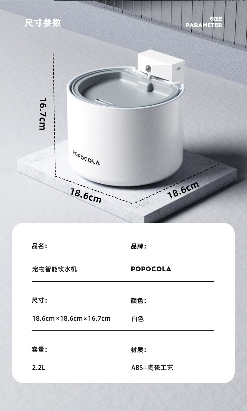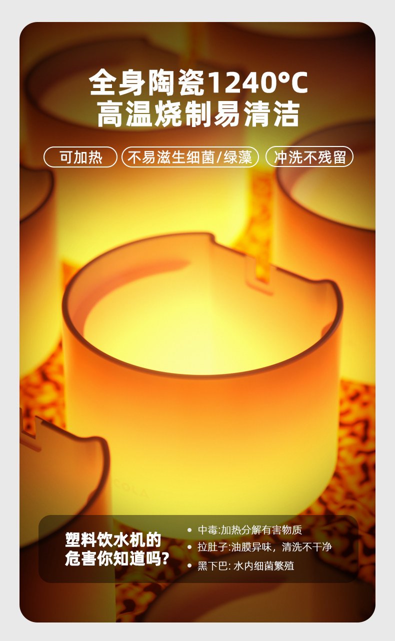 POPO恒温猫咪饮水机宠物喝水喂水器流动加热陶瓷不插电自动饮水器