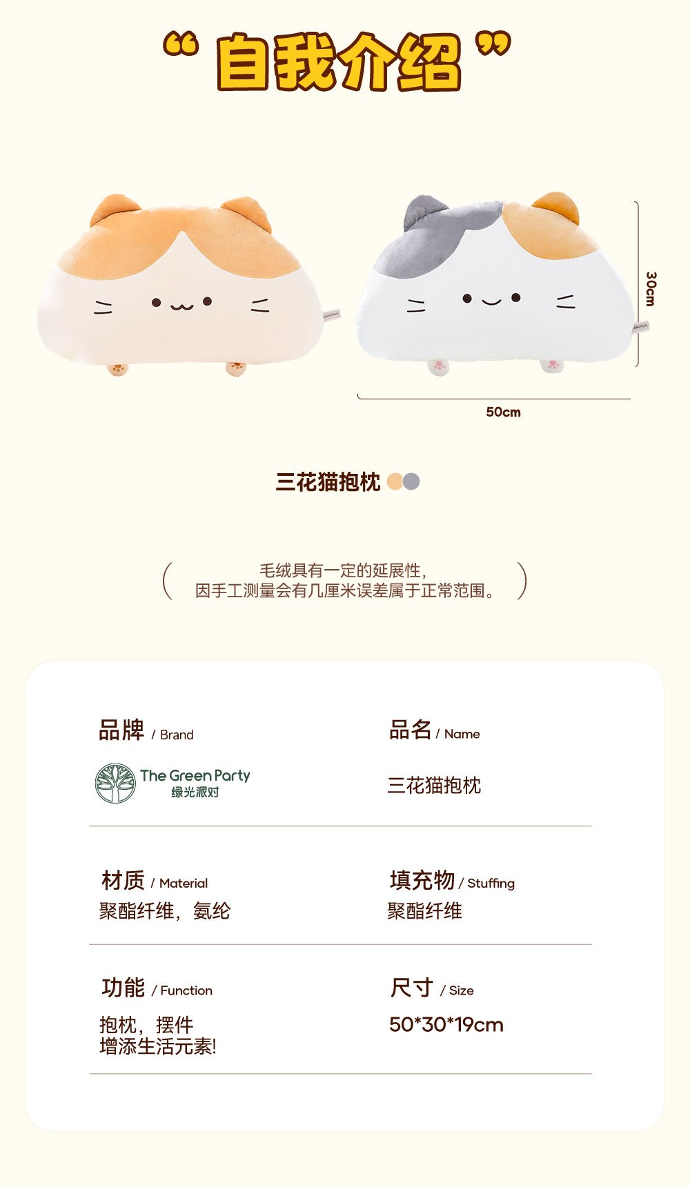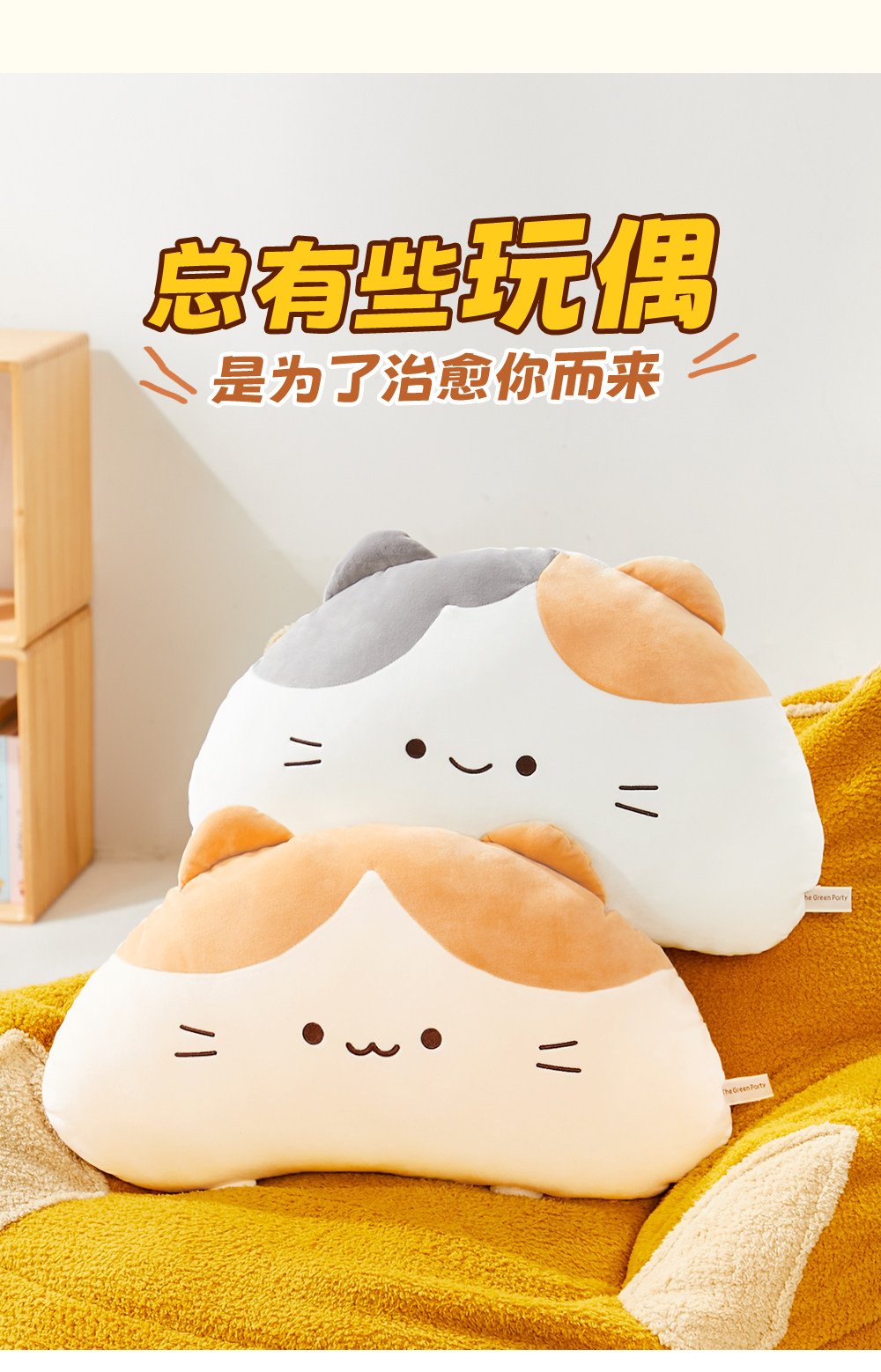 TheGreenParty三花猫抱枕毛绒玩具公仔玩偶睡觉抱枕生日礼物儿童 数量